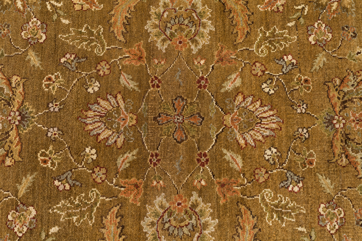 Более пяти веков назад в городе Агра зародилась знаменитая индийская школа ковроткачества, прославившаяся не меньше, чем расположенный здесь же Тадж-Махал. Мощное персидское влияние, помноженное на местный колорит, привело к появлению оригинальных орнаментов с богатыми растительными узорами — причудливым цветам, ветвям и листьям, разбросанным по всему полю ковра.