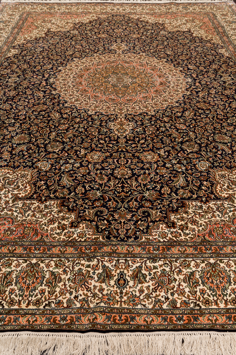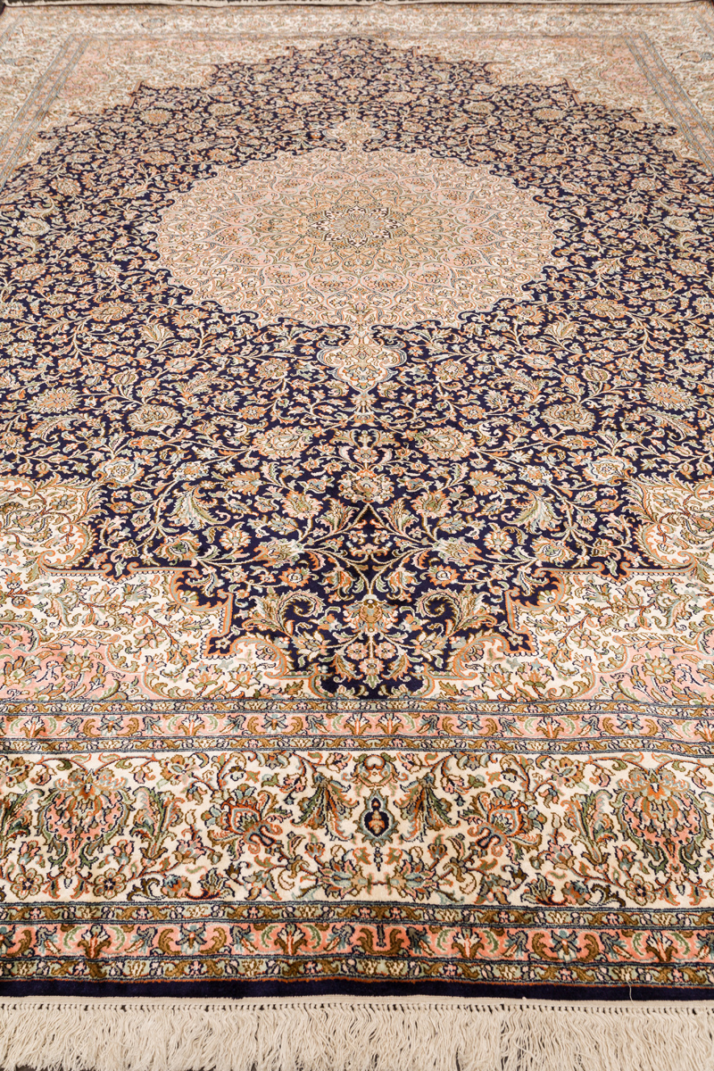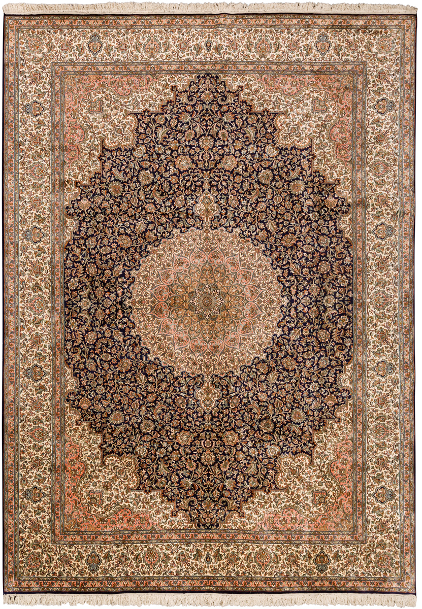 Ковры из коллекции Кашмир ткутся по традиционной технологии из нежнейшего кашмирского шелка. Лучшие произведения индийских мастеров отличает высокая узелковая плотность, прочность и яркость цветов.