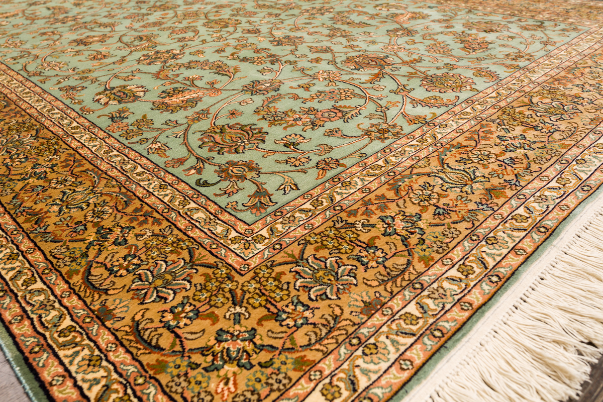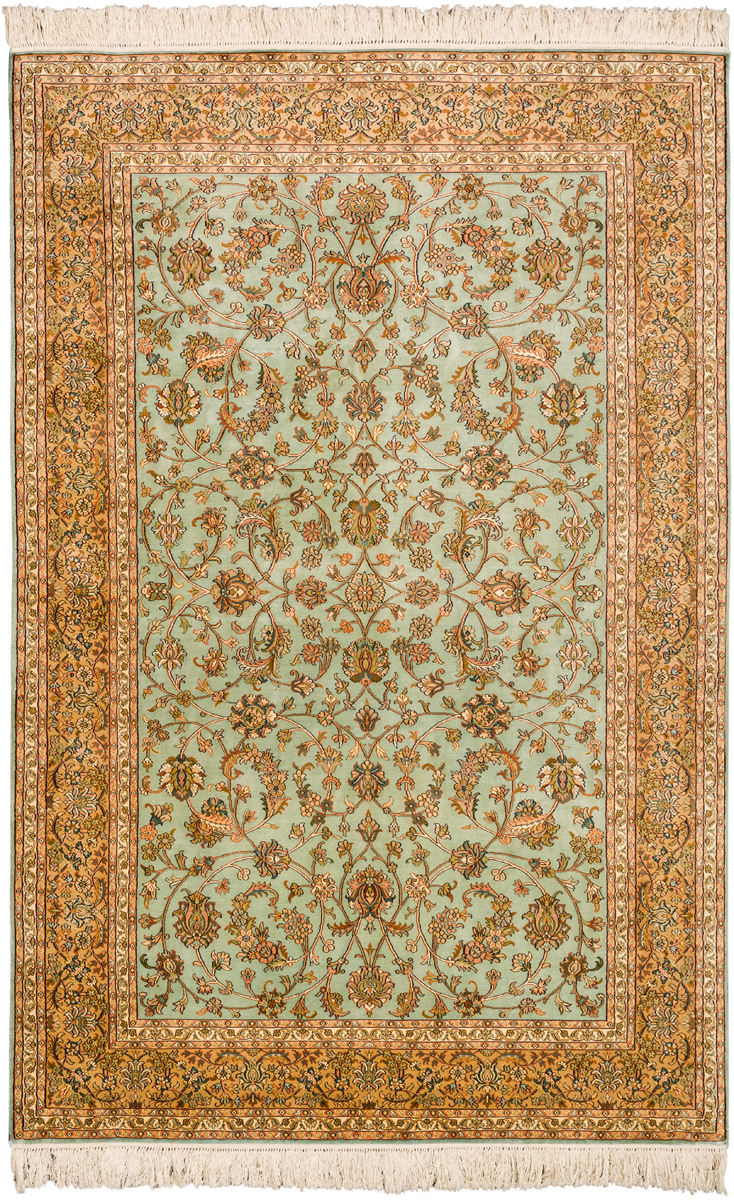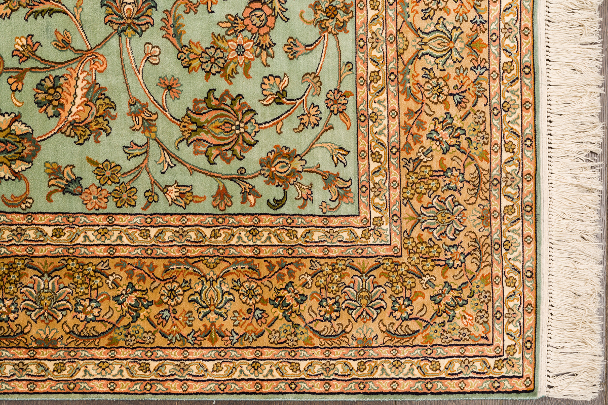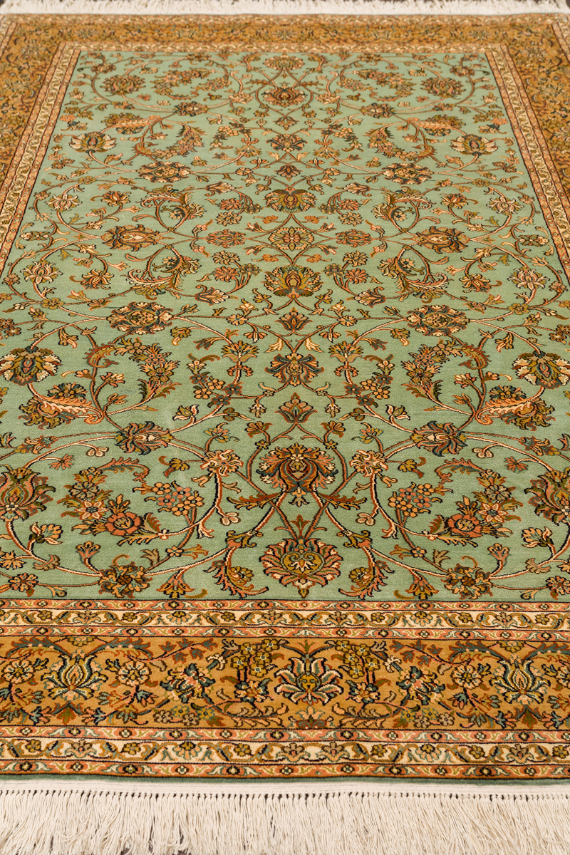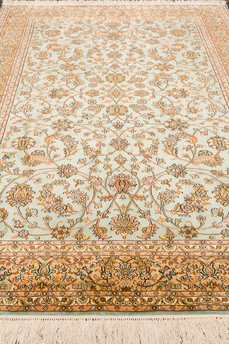 Ковры из коллекции Кашмир ткутся по традиционной технологии из нежнейшего кашмирского шелка. Лучшие произведения индийских мастеров отличает высокая узелковая плотность, прочность и яркость цветов.