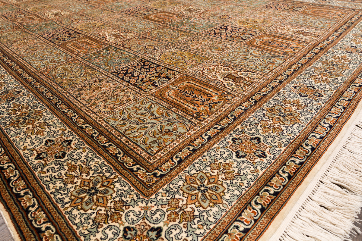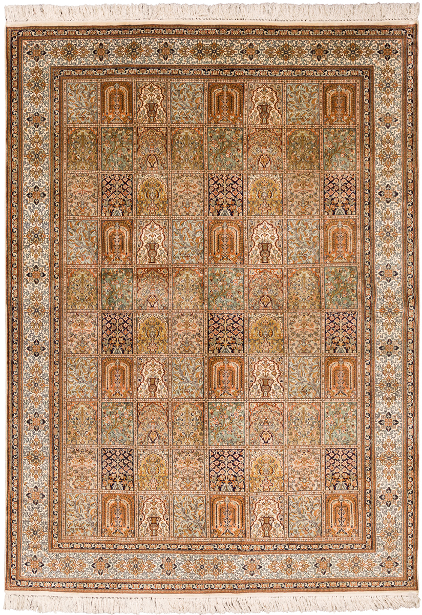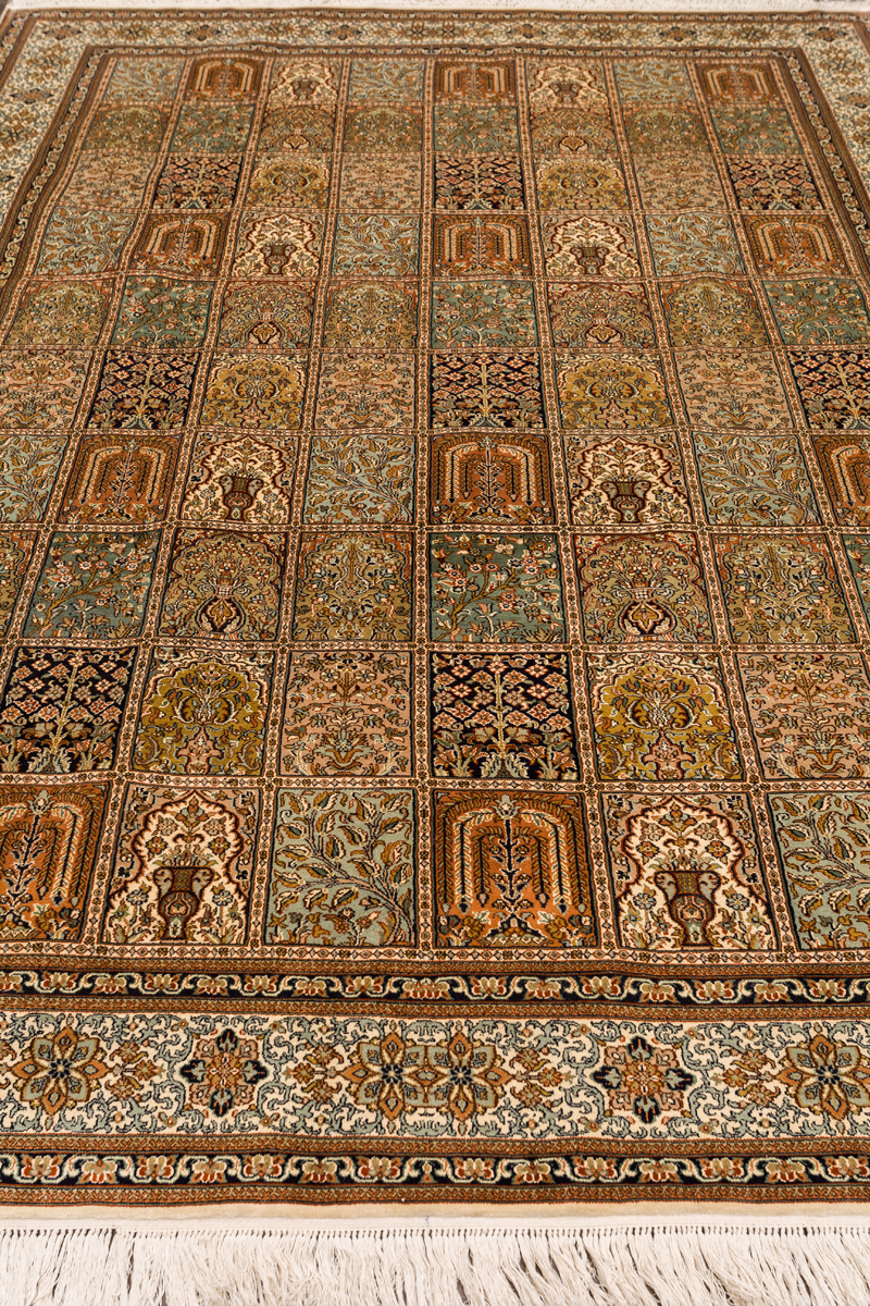 Ковры из коллекции Кашмир ткутся по традиционной технологии из нежнейшего кашмирского шелка. Лучшие произведения индийских мастеров отличает высокая узелковая плотность, прочность и яркость цветов.