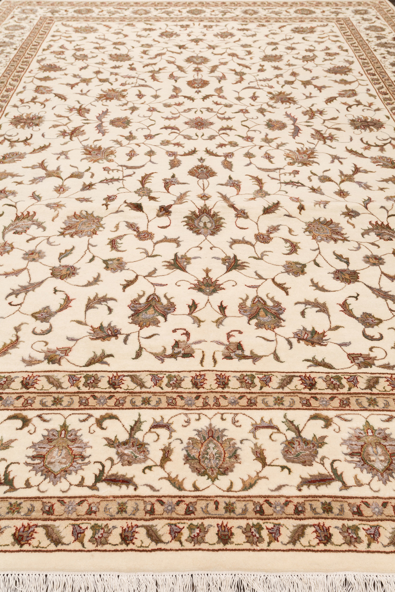 Более пяти веков назад в городе Агра зародилась знаменитая индийская школа ковроткачества, прославившаяся не меньше, чем расположенный здесь же Тадж-Махал. Мощное персидское влияние, помноженное на местный колорит, привело к появлению оригинальных орнаментов с богатыми растительными узорами — причудливым цветам, ветвям и листьям, разбросанным по всему полю ковра.