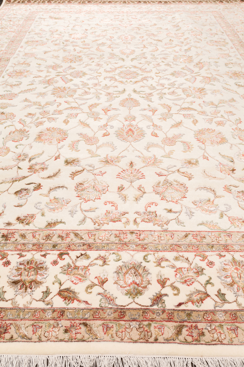 Каждый ковер в этой коллекции соткан вручную из шерсти и арт шёлка опытными индийскими мастерами.