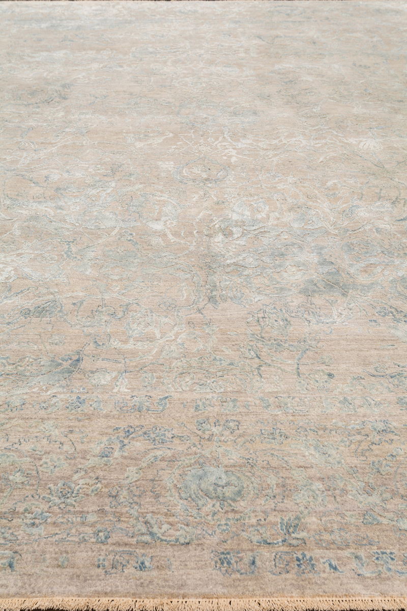 Время и природа — два главных стержня. Впечатление такое, что краски словно стёрлись, а если они и сохраняют яркость, то рисунок сохранился не весь, какие‑то фрагменты утрачены — такова типология этого столь актуального сегодня ковра ручной работы из коллекции illusion.