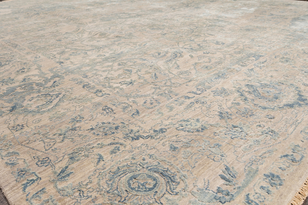 Такой эффект достигается за счет специальной техники плетения, а также обработки, которой подвергают ковры, чтобы они выглядели как антикварные — то есть дорого, элегантно и модно.
