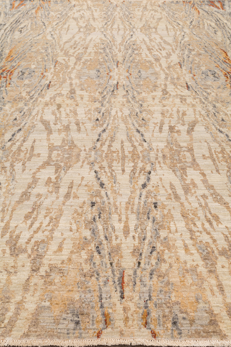 Дизайн ковров напоминает современные полотна художников-абстракционистов и производит столь же яркое и незабываемое впечатление в интерьере. Живописный эффект и необычная фактура зависят от выбора материала: натуральной шерсти, шёлка и от их сочетаний друг с другом. Ковры ткутся вручную в лучших мастерских Индии и Пакистана.