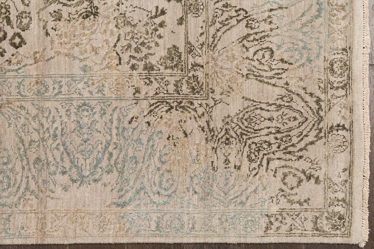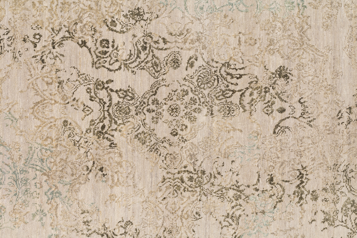 Время и природа — два главных стержня. Впечатление такое, что краски словно стёрлись, а если они и сохраняют яркость, то рисунок сохранился не весь, какие‑то фрагменты утрачены — такова типология этого столь актуального сегодня ковра ручной работы из коллекции illusion.