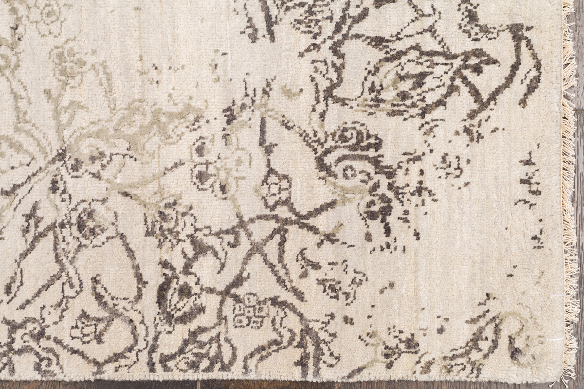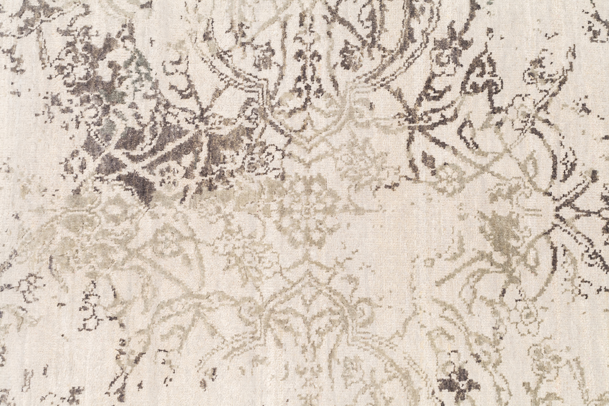 Время и природа — два главных стержня. Впечатление такое, что краски словно стёрлись, а если они и сохраняют яркость, то рисунок сохранился не весь, какие‑то фрагменты утрачены — такова типология этого столь актуального сегодня ковра ручной работы из коллекции illusion.