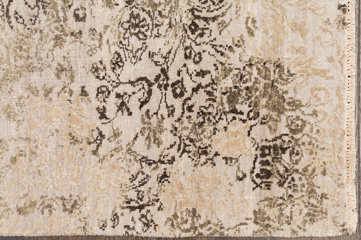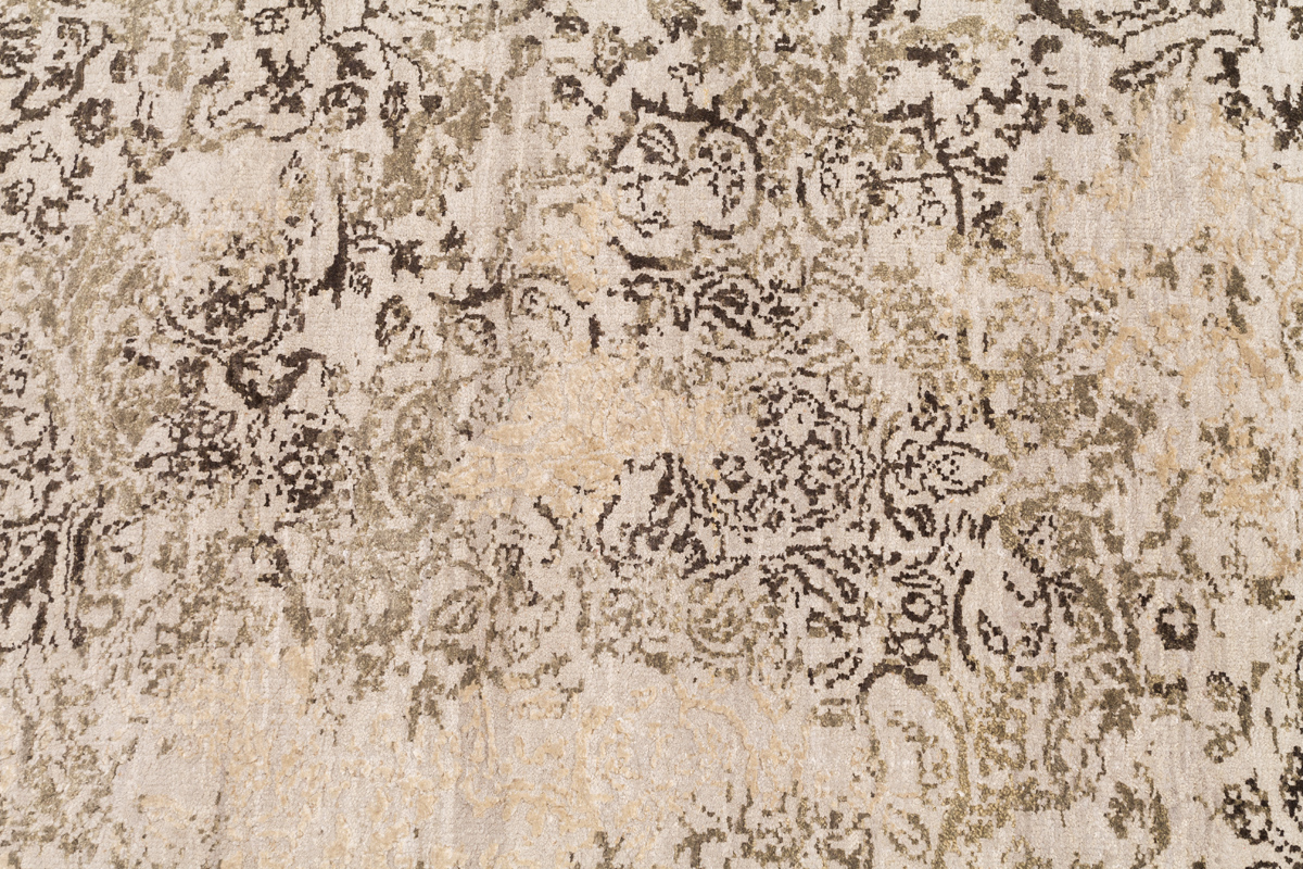 Время и природа — два главных стержня. Впечатление такое, что краски словно стёрлись, а если они и сохраняют яркость, то рисунок сохранился не весь, какие‑то фрагменты утрачены — такова типология этого столь актуального сегодня ковра ручной работы из коллекции illusion.