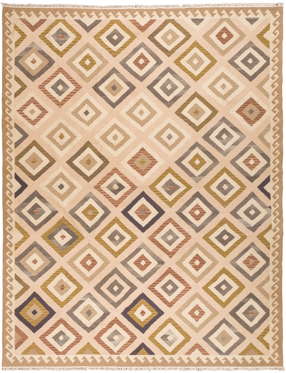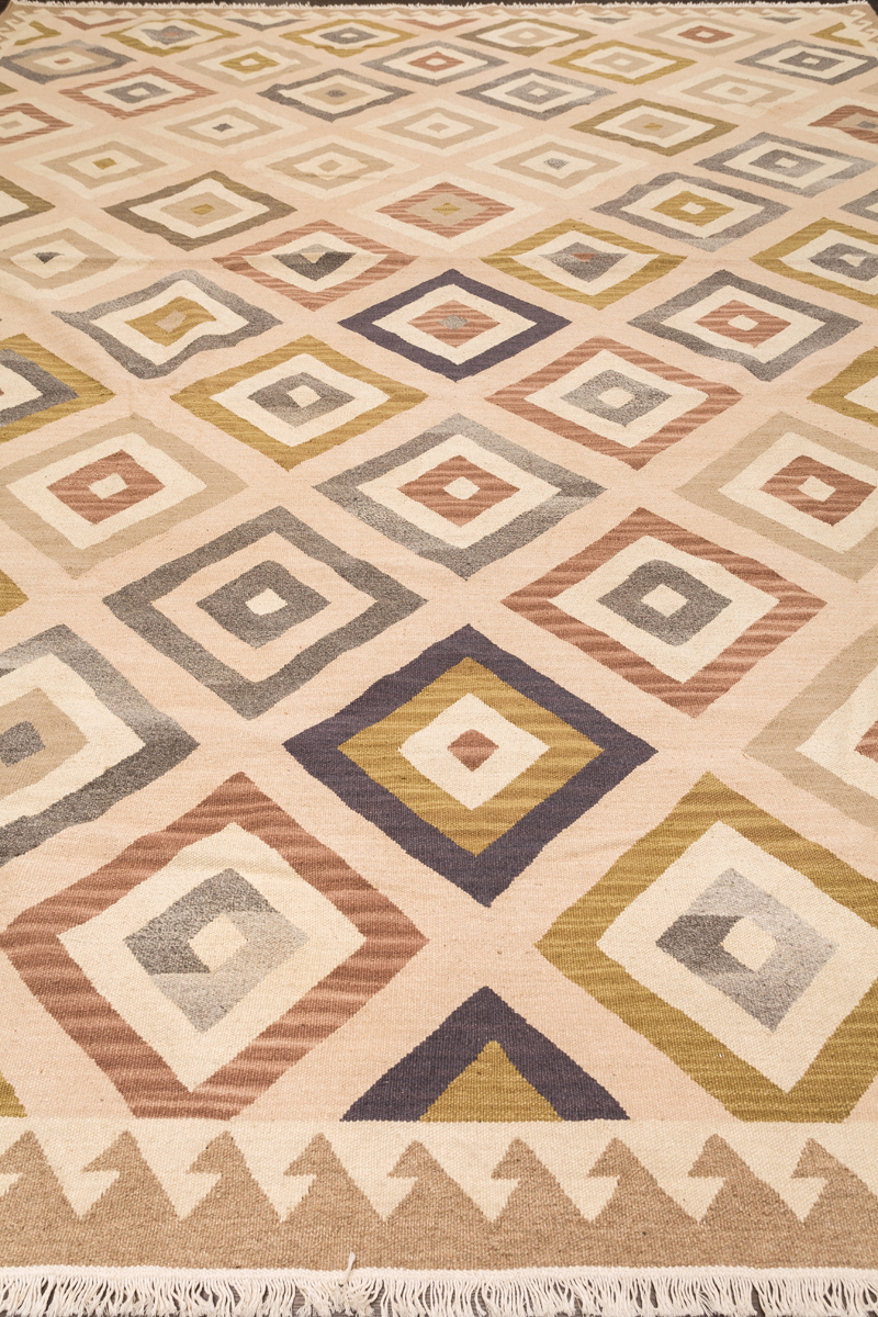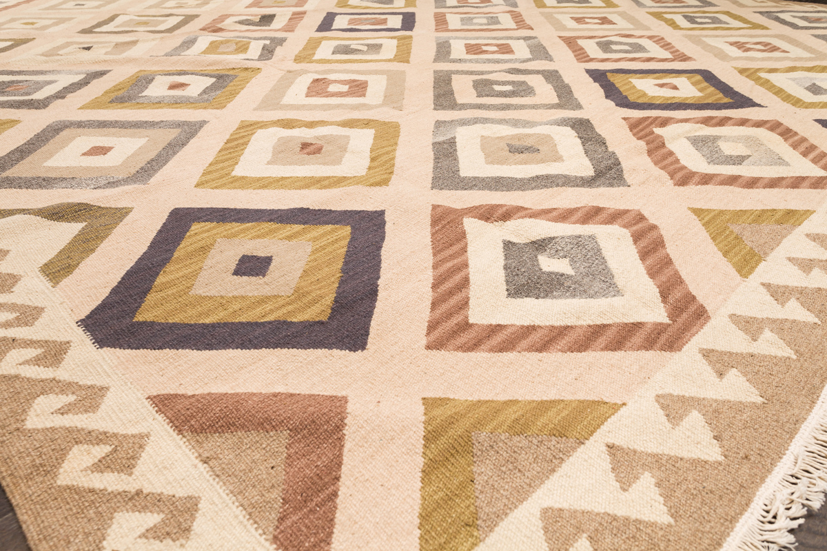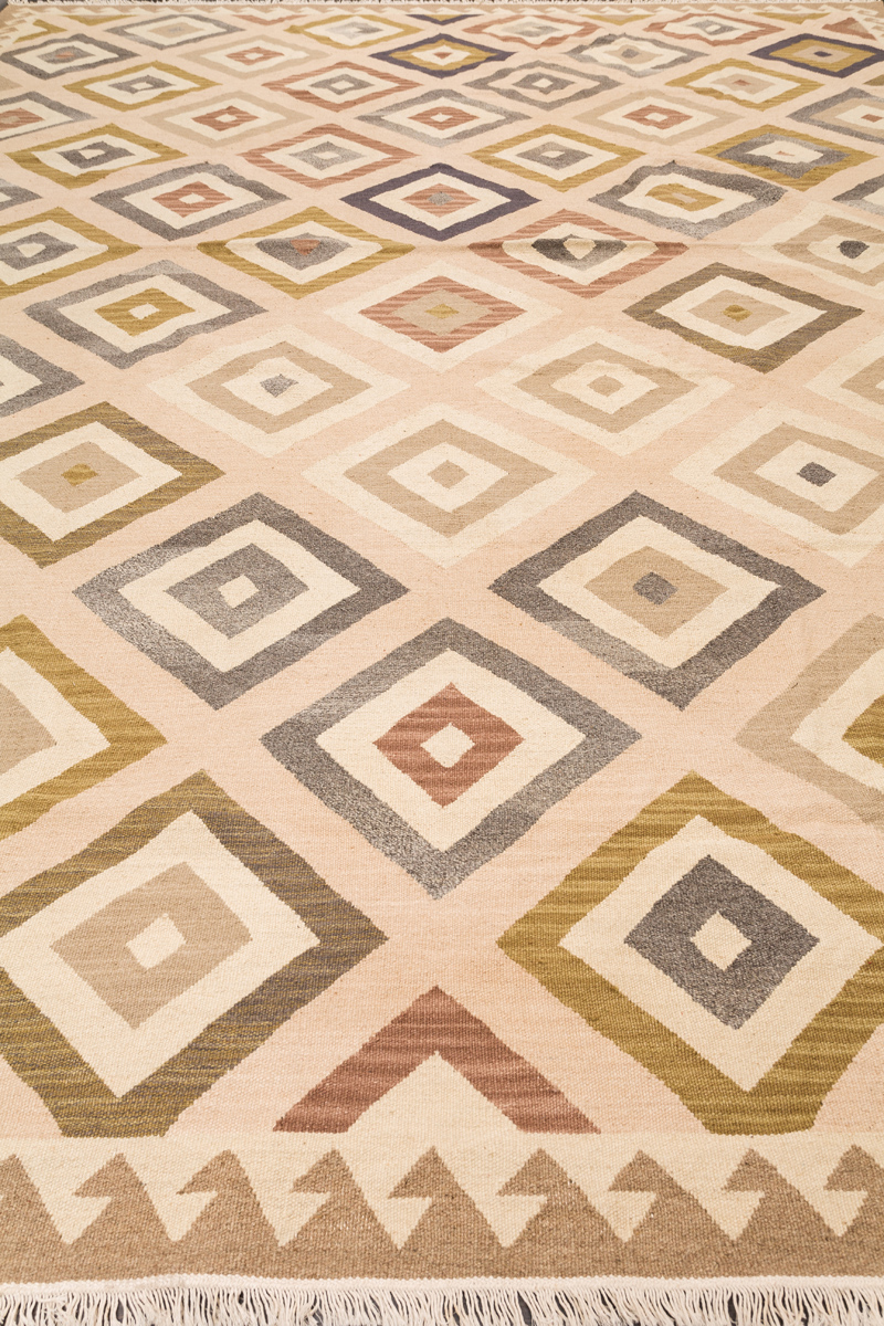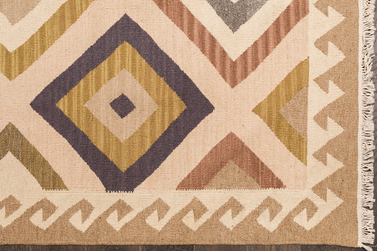 Узор ковров из коллекции Килим создаётся взаимодействием нитей утока и нитей основы, благодаря чему получается геометрический узор.