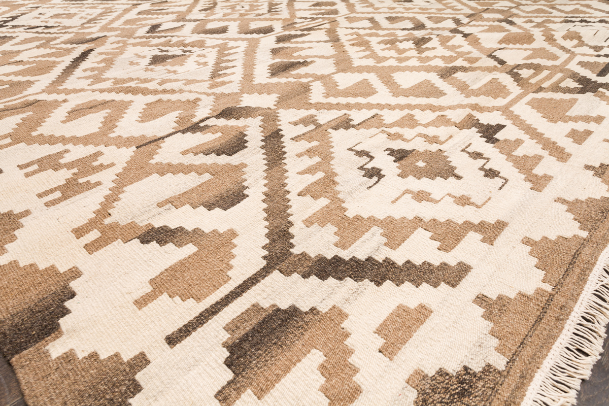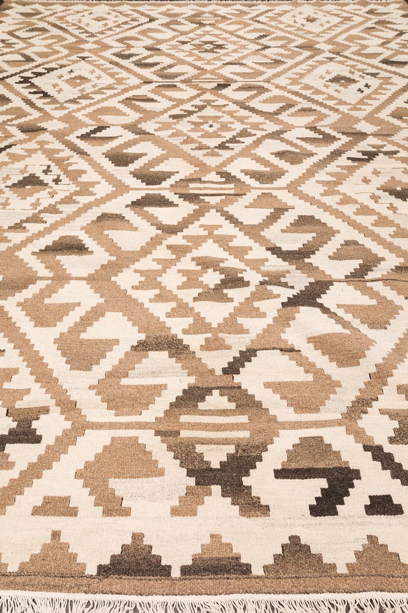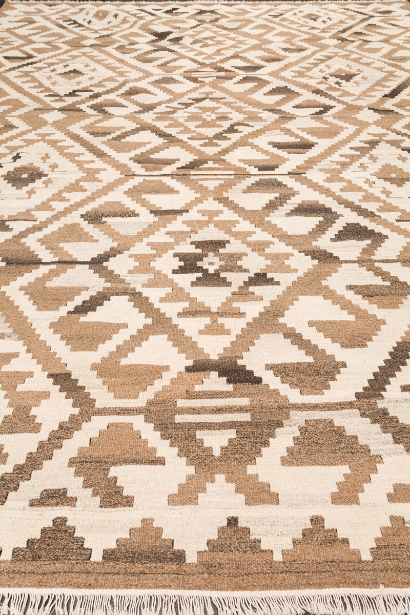 Узор ковров из коллекции Килим создаётся взаимодействием нитей утока и нитей основы, благодаря чему получается геометрический узор.