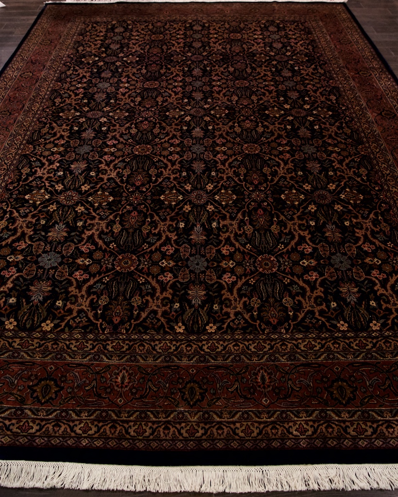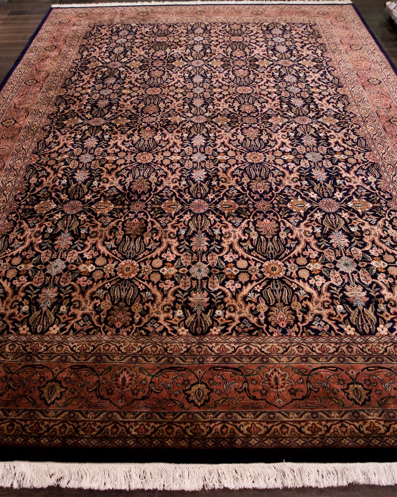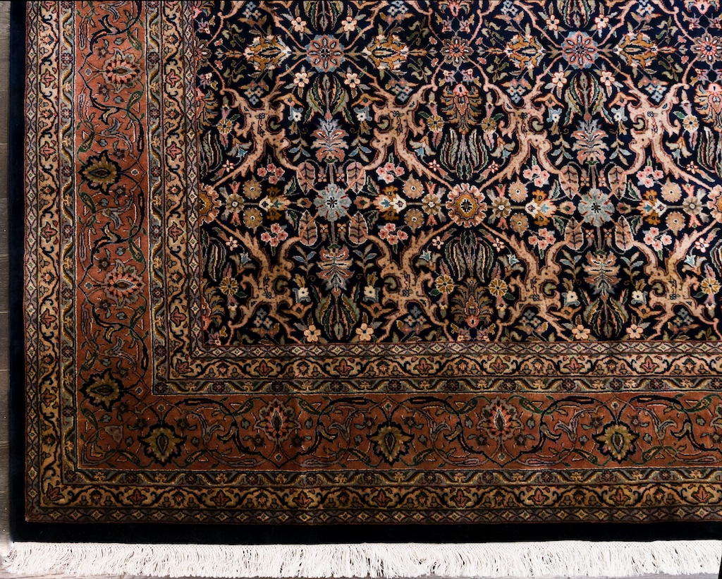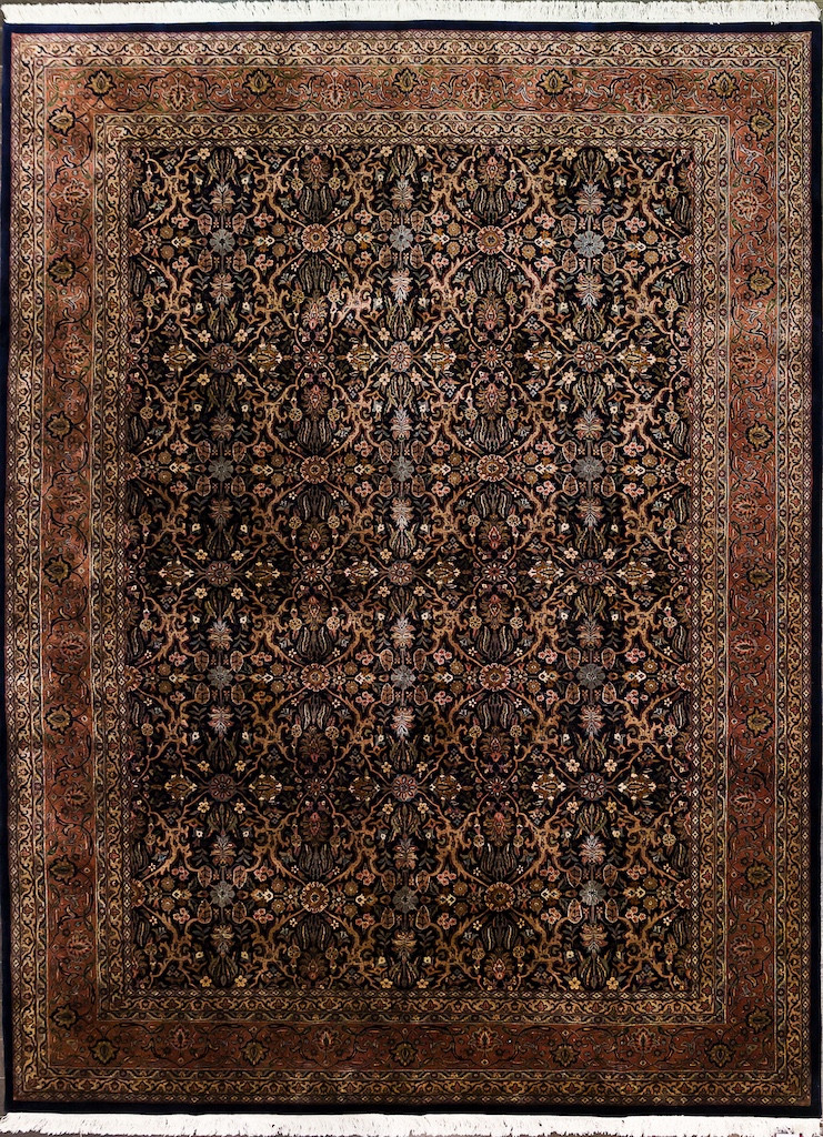 Более пяти веков назад в городе Агра зародилась знаменитая индийская школа ковроткачества, прославившаяся не меньше, чем расположенный здесь же Тадж-Махал. Мощное персидское влияние, помноженное на местный колорит, привело к появлению оригинальных орнаментов с богатыми растительными узорами — причудливым цветам, ветвям и листьям, разбросанным по всему полю ковра.