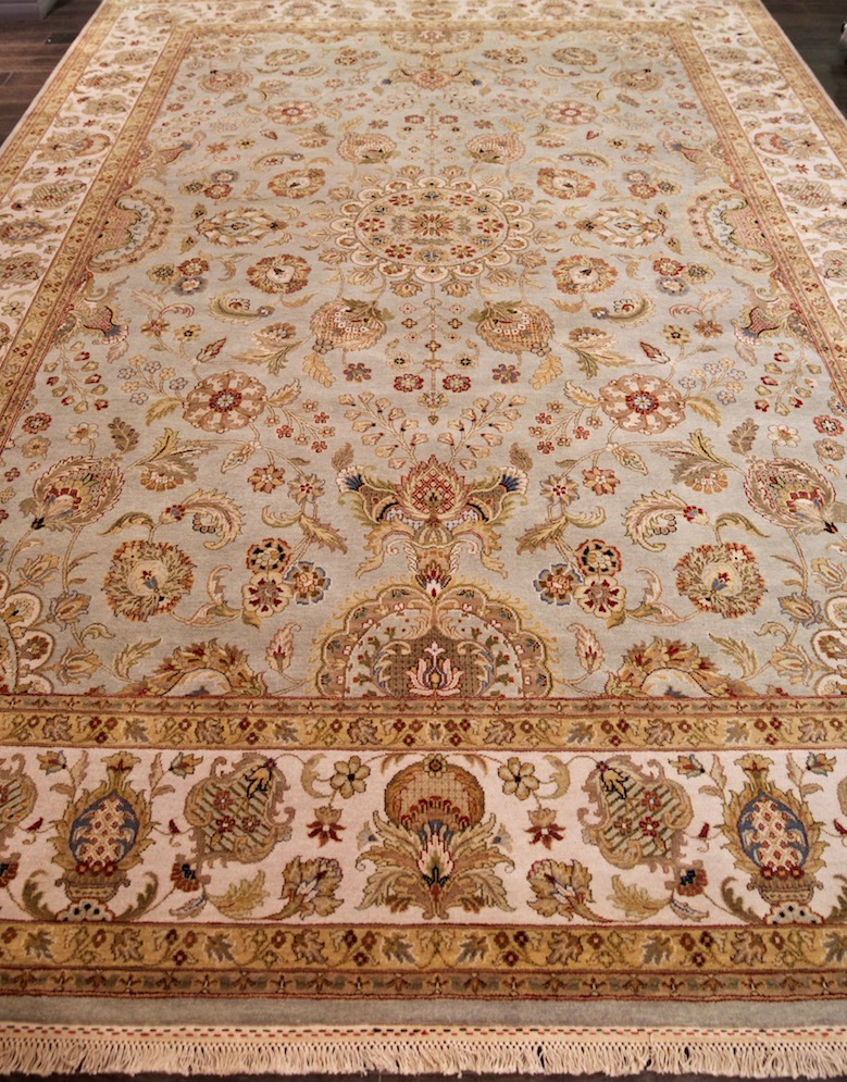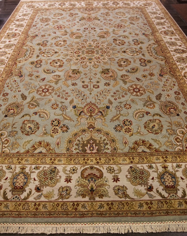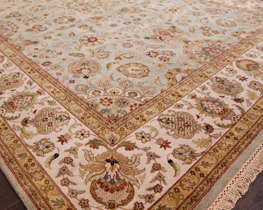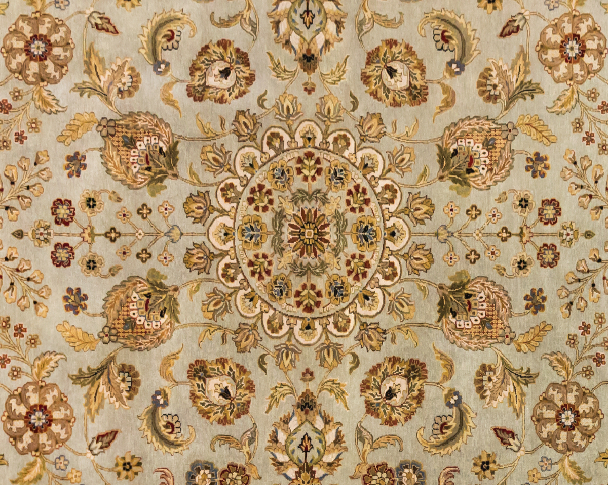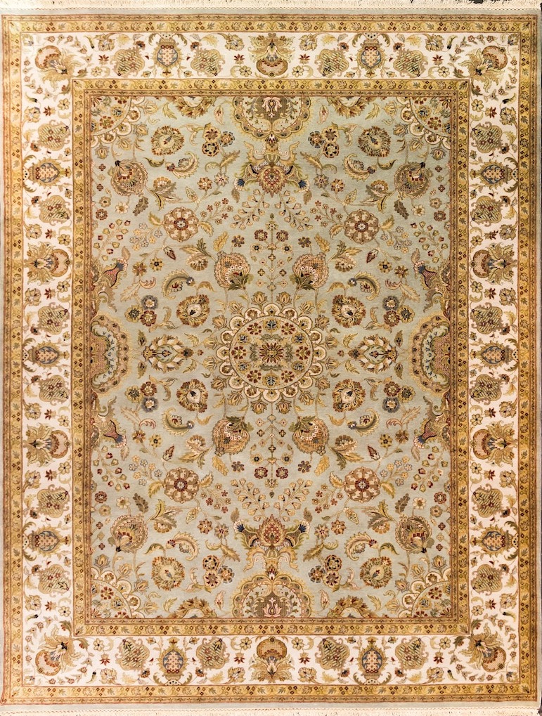 Более пяти веков назад в городе Агра зародилась знаменитая индийская школа ковроткачества, прославившаяся не меньше, чем расположенный здесь же Тадж-Махал. Мощное персидское влияние, помноженное на местный колорит, привело к появлению оригинальных орнаментов с богатыми растительными узорами — причудливым цветам, ветвям и листьям, разбросанным по всему полю ковра.
