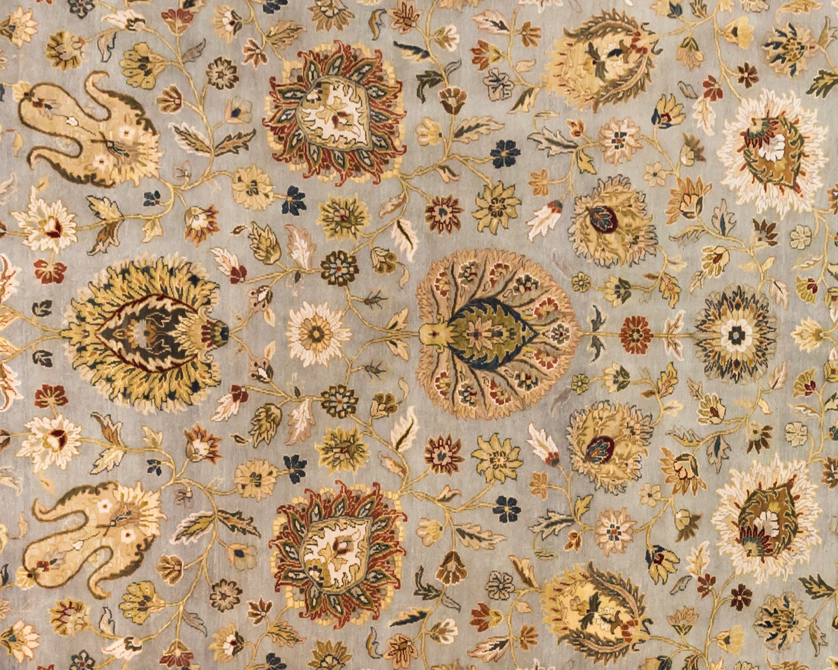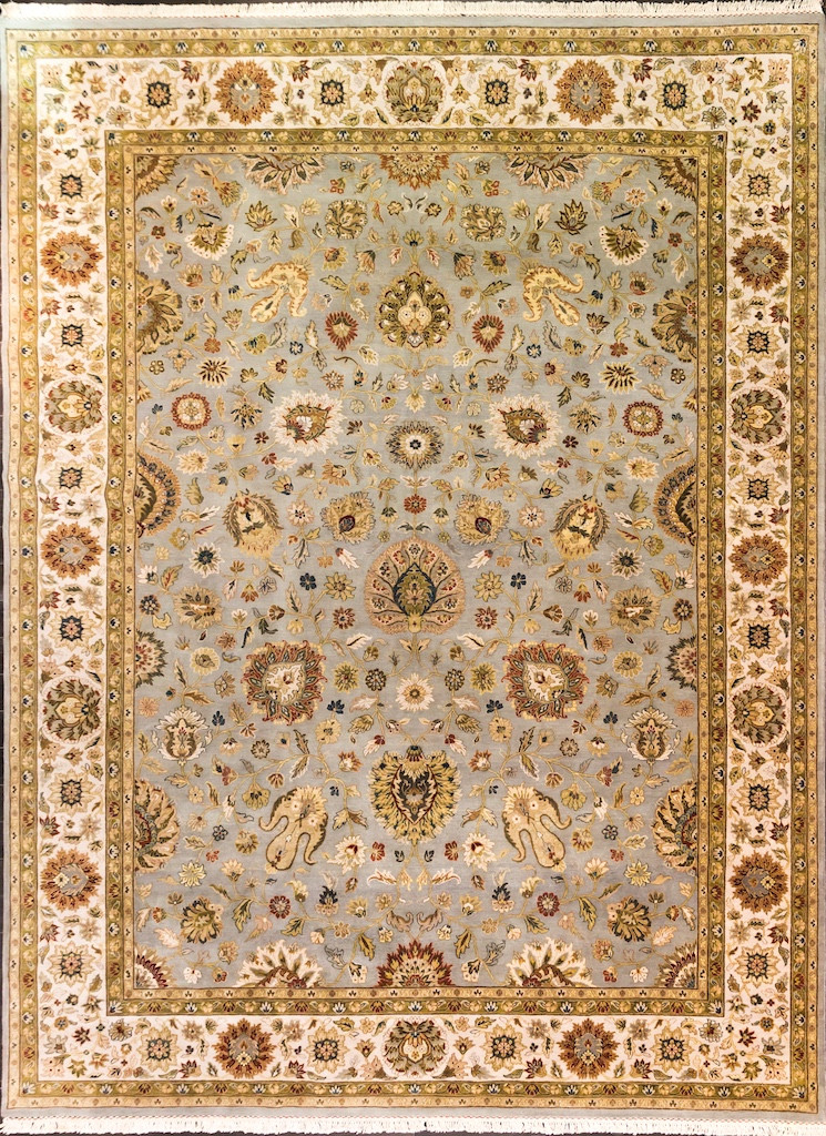Более пяти веков назад в городе Агра зародилась знаменитая индийская школа ковроткачества, прославившаяся не меньше, чем расположенный здесь же Тадж-Махал. Мощное персидское влияние, помноженное на местный колорит, привело к появлению оригинальных орнаментов с богатыми растительными узорами — причудливым цветам, ветвям и листьям, разбросанным по всему полю ковра.