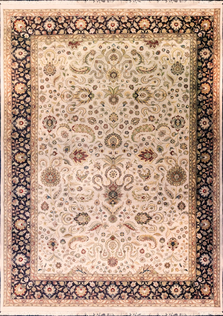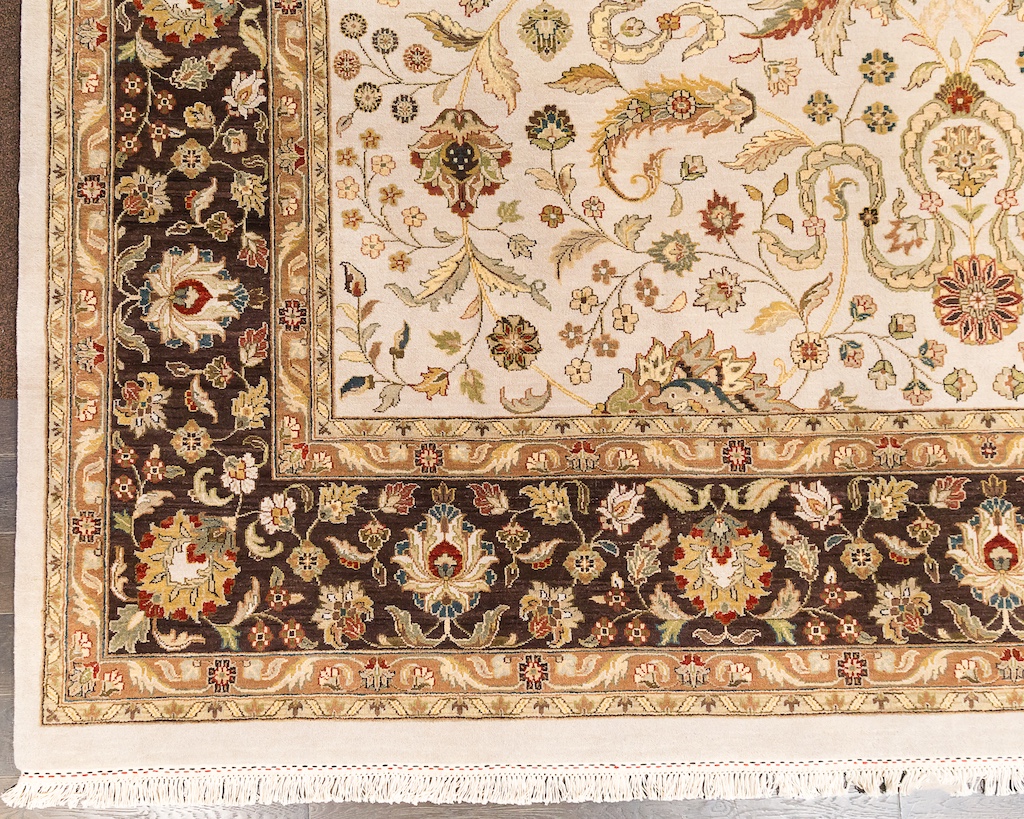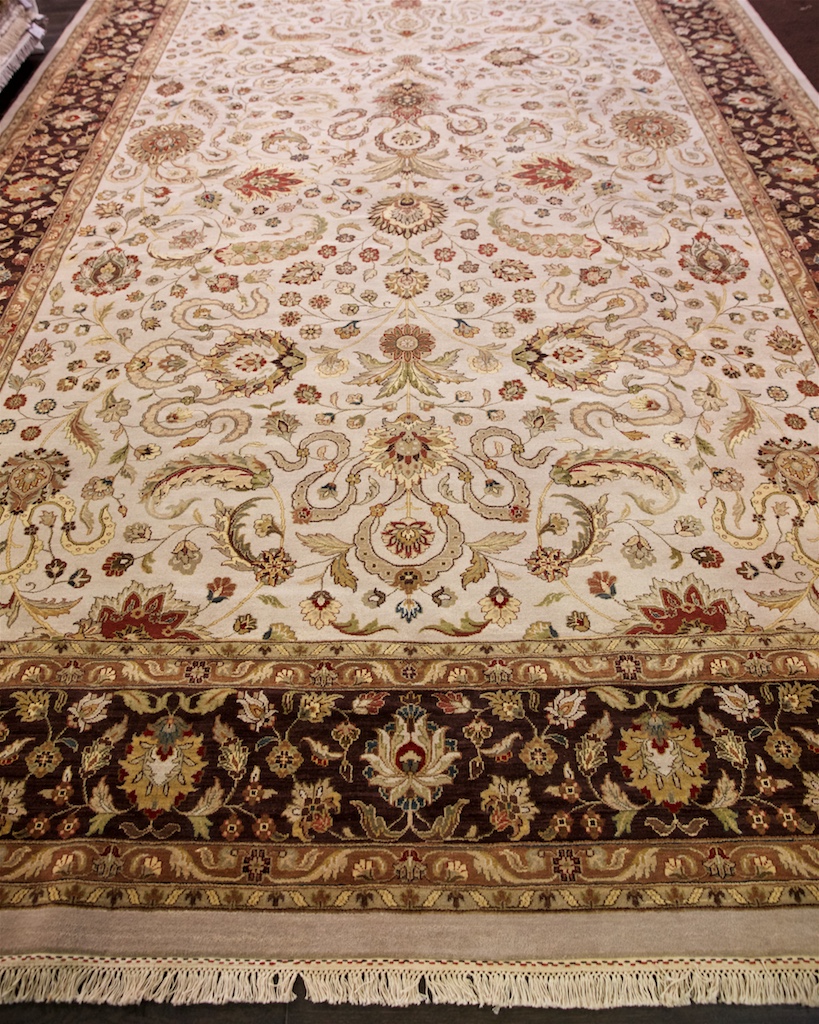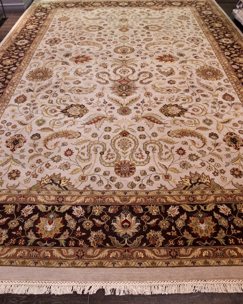 Более пяти веков назад в городе Агра зародилась знаменитая индийская школа ковроткачества, прославившаяся не меньше, чем расположенный здесь же Тадж-Махал. Мощное персидское влияние, помноженное на местный колорит, привело к появлению оригинальных орнаментов с богатыми растительными узорами — причудливым цветам, ветвям и листьям, разбросанным по всему полю ковра.