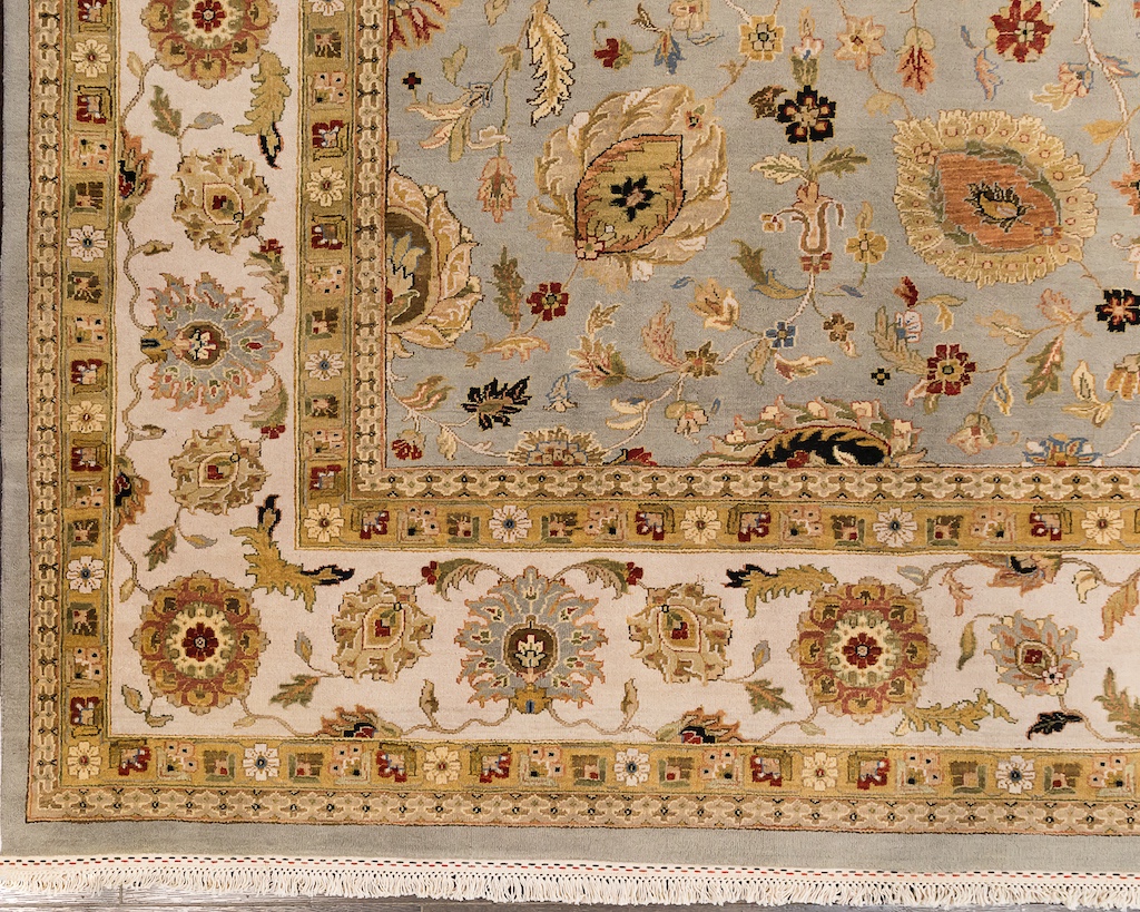 Более пяти веков назад в городе Агра зародилась знаменитая индийская школа ковроткачества, прославившаяся не меньше, чем расположенный здесь же Тадж-Махал. Мощное персидское влияние, помноженное на местный колорит, привело к появлению оригинальных орнаментов с богатыми растительными узорами — причудливым цветам, ветвям и листьям, разбросанным по всему полю ковра.