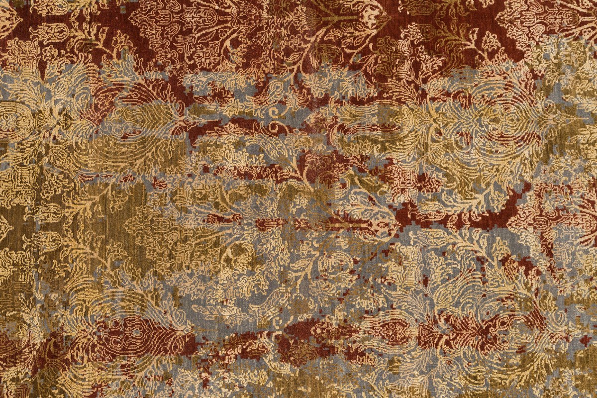 Время и природа — два главных стержня. Впечатление такое, что краски словно стёрлись, а если они и сохраняют яркость, то рисунок сохранился не весь, какие‑то фрагменты утрачены — такова типология этого столь актуального сегодня ковра ручной работы из коллекции Pearl.