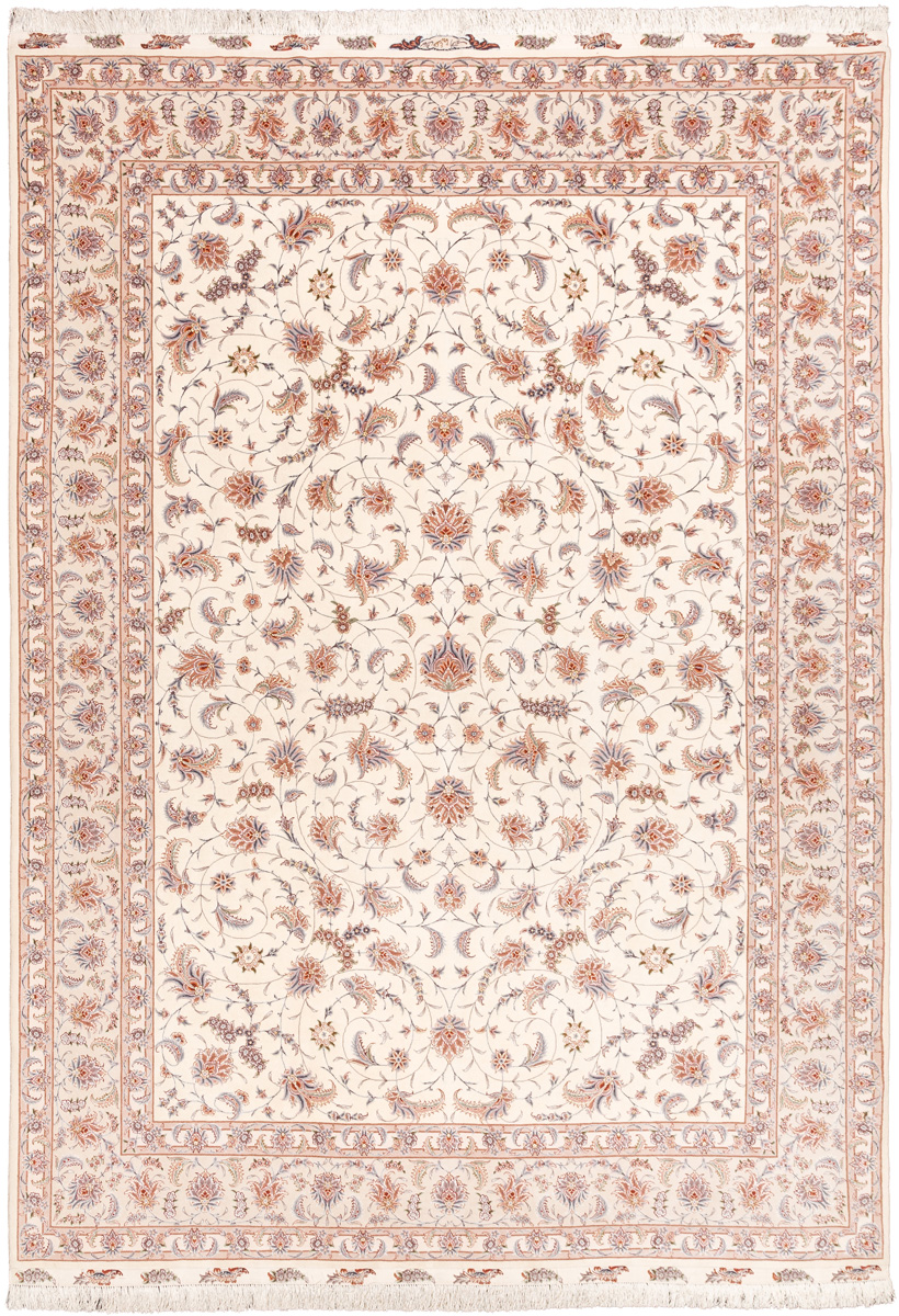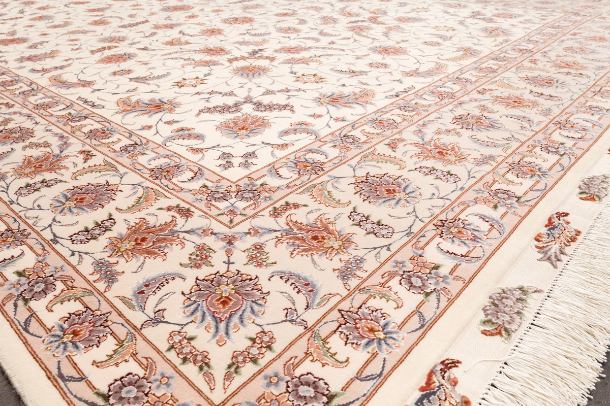 Рассыпанные по всему полю цветы, медальоны и «рыбная чешуя» — основные мотивы в дизайне ковров из коллекции Тебриз, а светлые тона и спокойные пастельные оттенки — основная цветовая палитра.