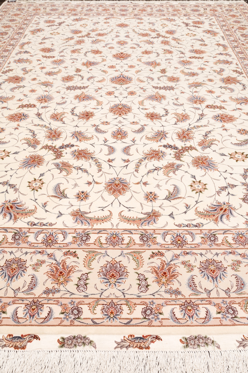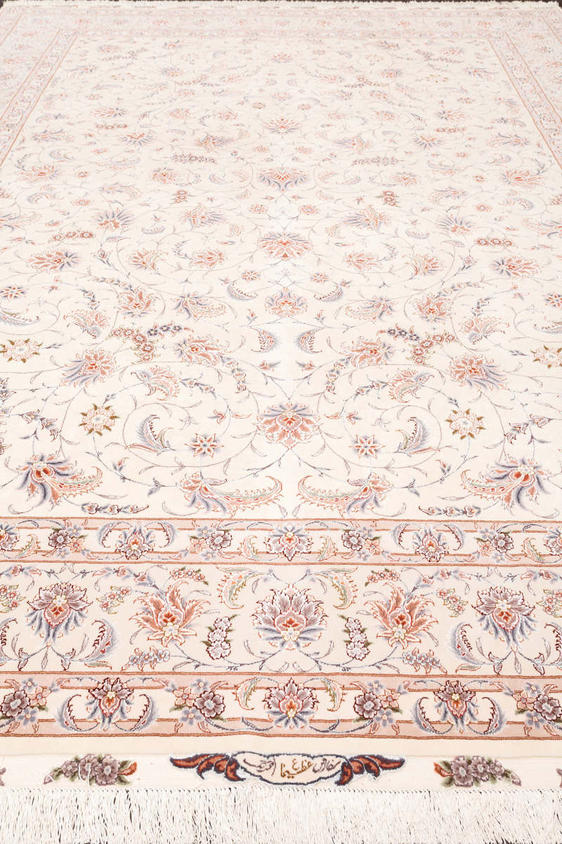 Ковры ткутся из шерсти и шёлка лучшими мастерами Ирана несколько лет, ведь обладают высочайшей плотностью для подобного состава ворса в 600 тысяч узлов на квадратный метр.
