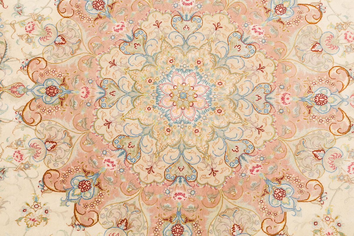 Рассыпанные по всему полю цветы, медальоны и «рыбная чешуя» — основные мотивы в дизайне ковров из коллекции Тебриз, а светлые тона и спокойные пастельные оттенки — основная цветовая палитра.