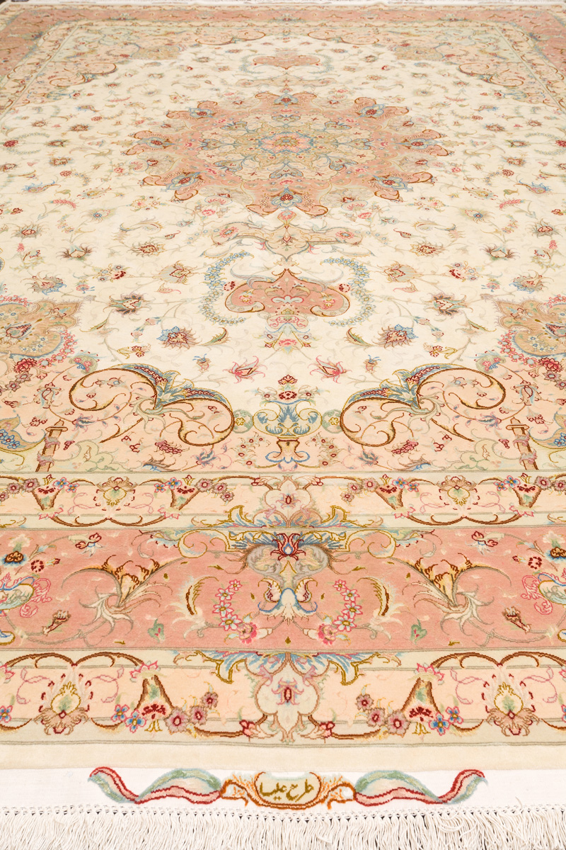 Ковры ткутся из шерсти и шёлка лучшими мастерами Ирана несколько лет, ведь обладают высочайшей плотностью для подобного состава ворса в 600 тысяч узлов на квадратный метр.