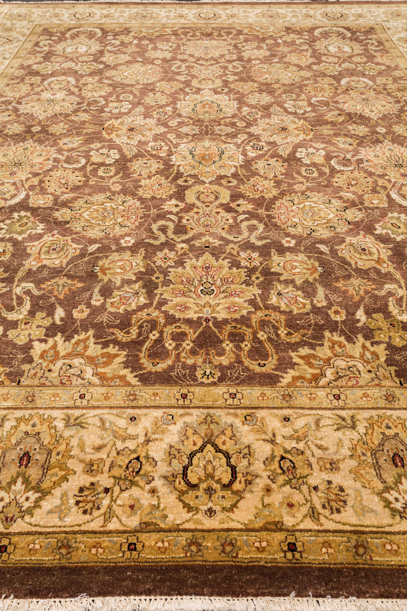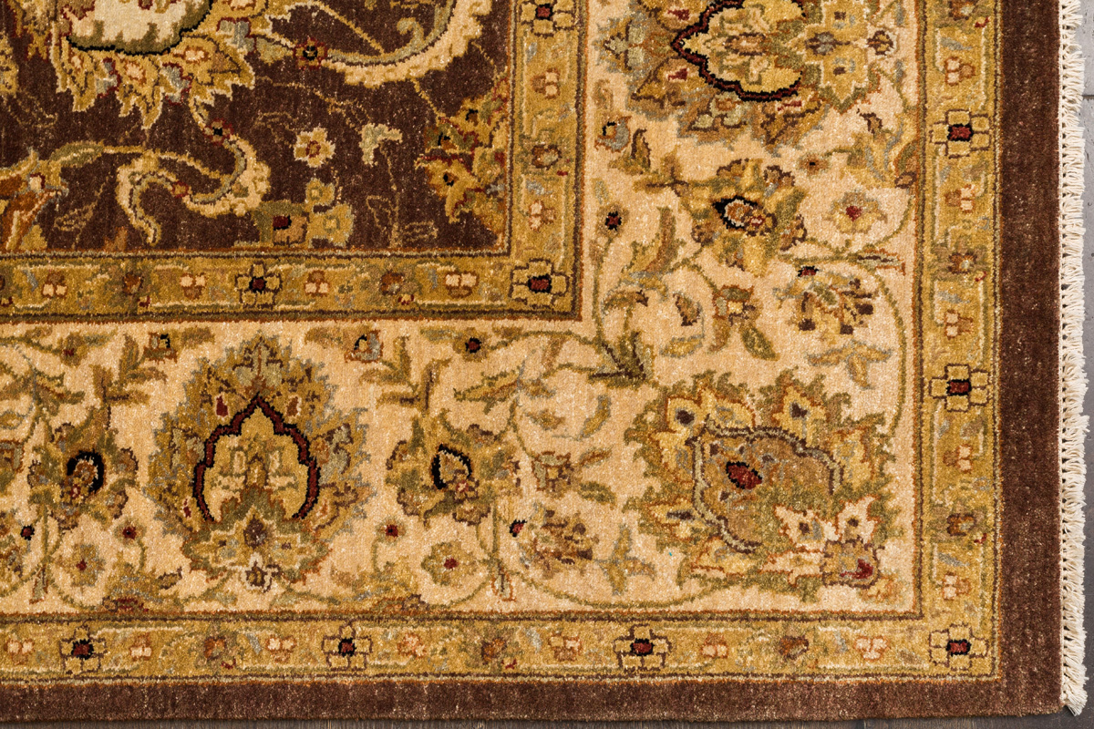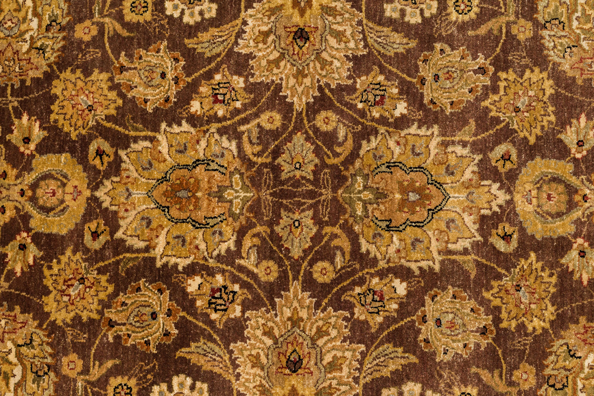 Более пяти веков назад в городе Агра зародилась знаменитая индийская школа ковроткачества, прославившаяся не меньше, чем расположенный здесь же Тадж-Махал. Мощное персидское влияние, помноженное на местный колорит, привело к появлению оригинальных орнаментов с богатыми растительными узорами — причудливым цветам, ветвям и листьям, разбросанным по всему полю ковра.