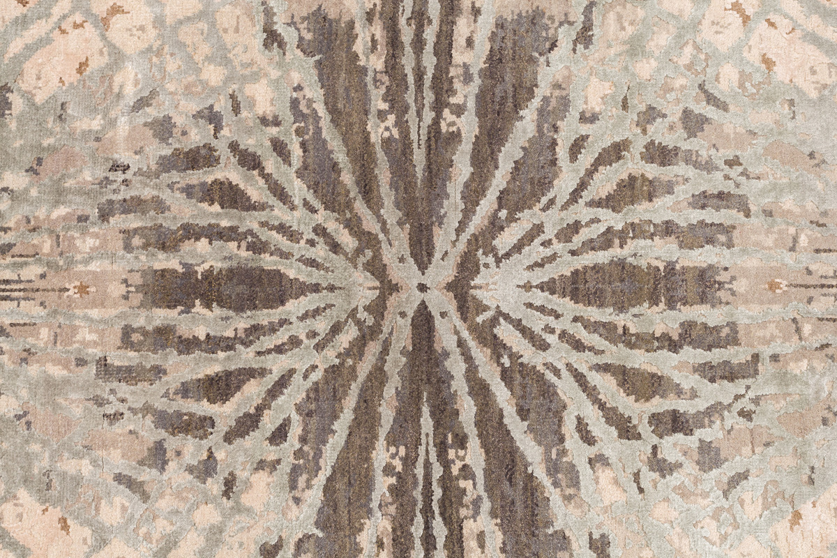 Дизайн ковров напоминает современные полотна художников-абстракционистов и производит столь же яркое и незабываемое впечатление в интерьере. Живописный эффект и необычная фактура зависят от выбора материала: натуральной шерсти, шёлка и от их сочетаний друг с другом. Ковры ткутся вручную в лучших мастерских Индии и Пакистана.