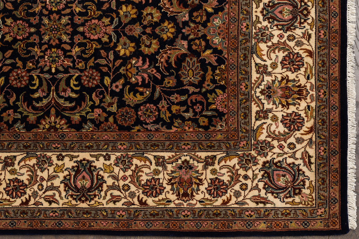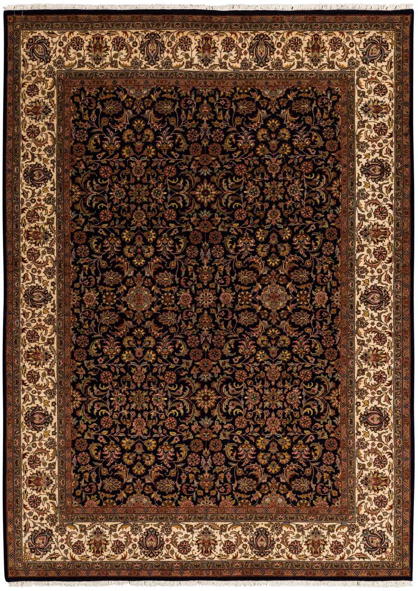 Более пяти веков назад в городе Агра зародилась знаменитая индийская школа ковроткачества, прославившаяся не меньше, чем расположенный здесь же Тадж-Махал. Мощное персидское влияние, помноженное на местный колорит, привело к появлению оригинальных орнаментов с богатыми растительными узорами — причудливым цветам, ветвям и листьям, разбросанным по всему полю ковра.