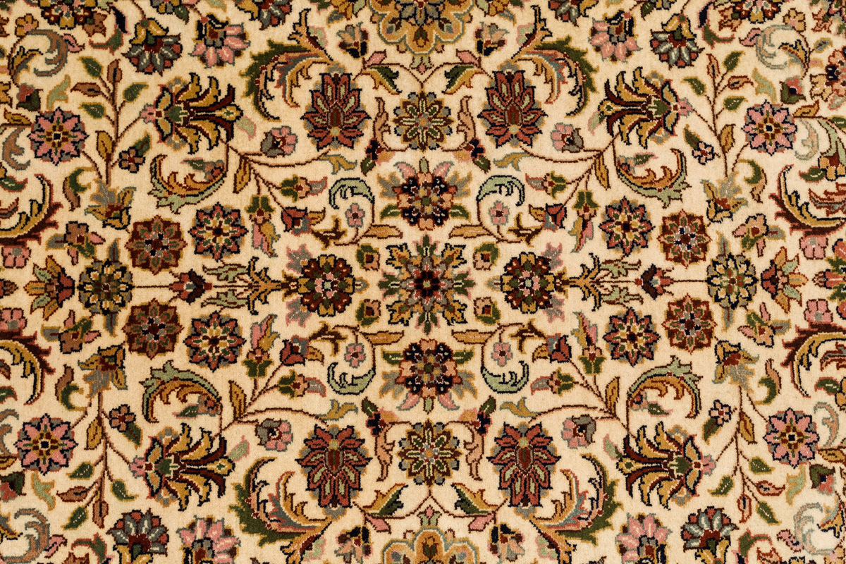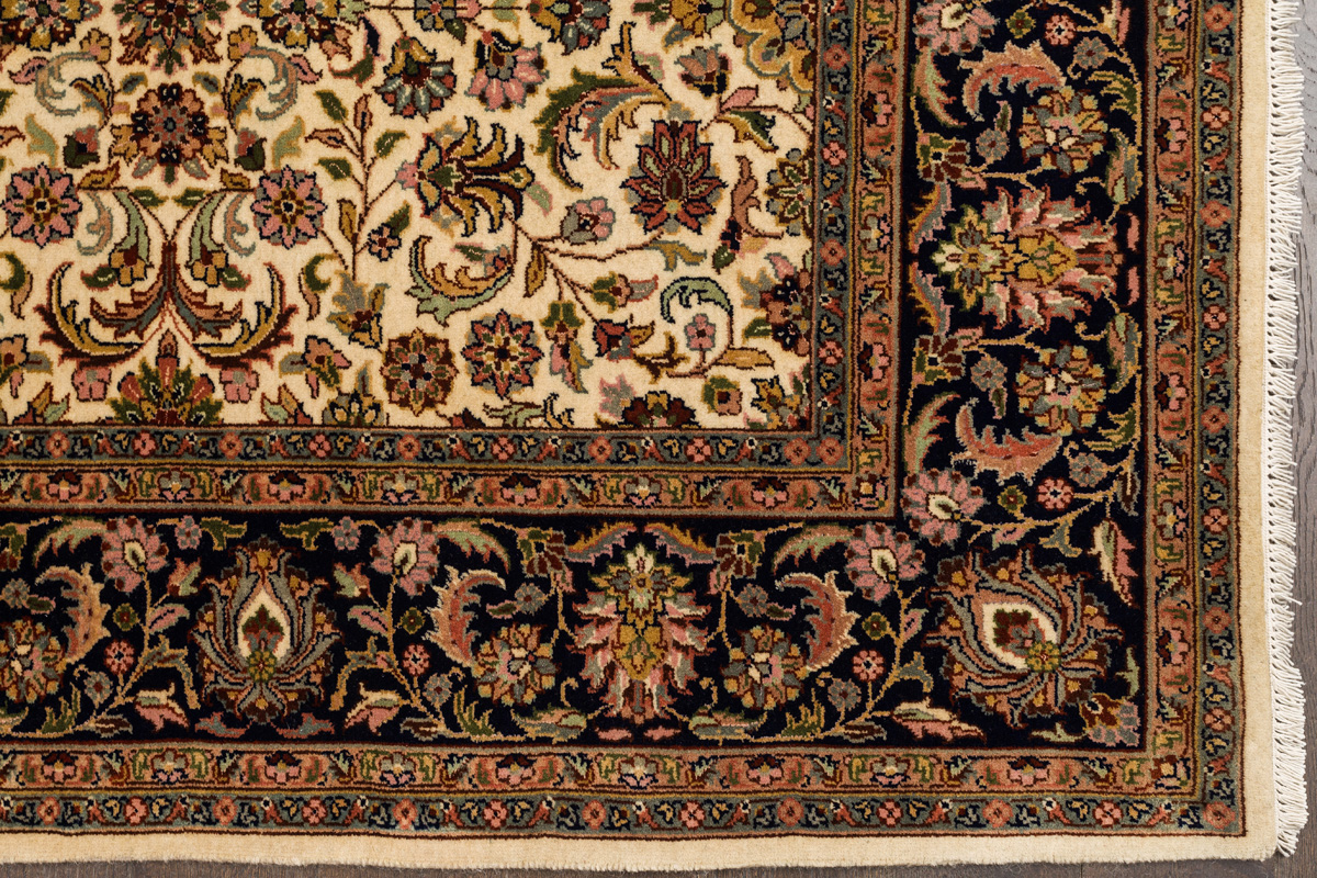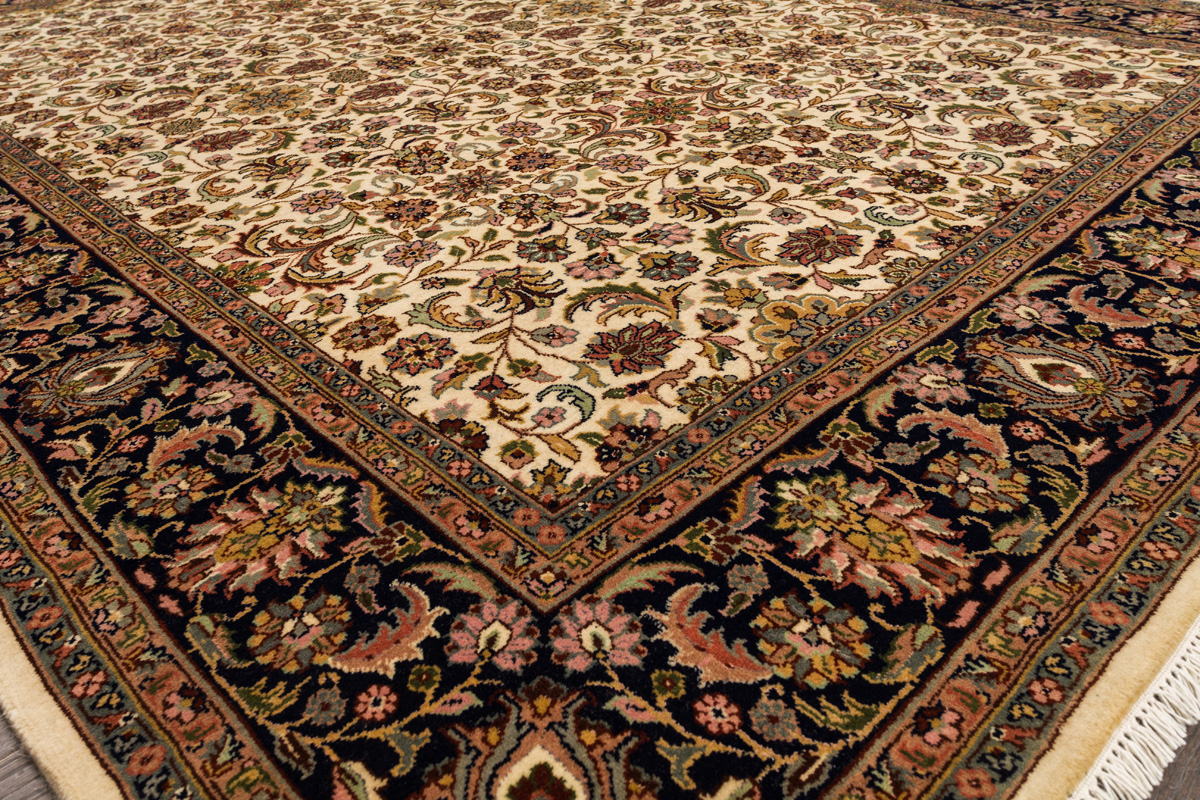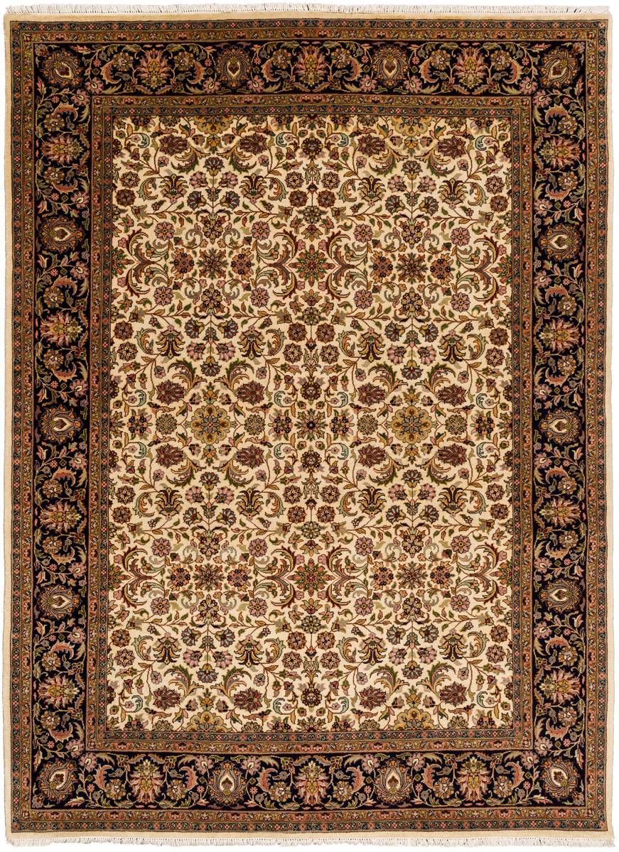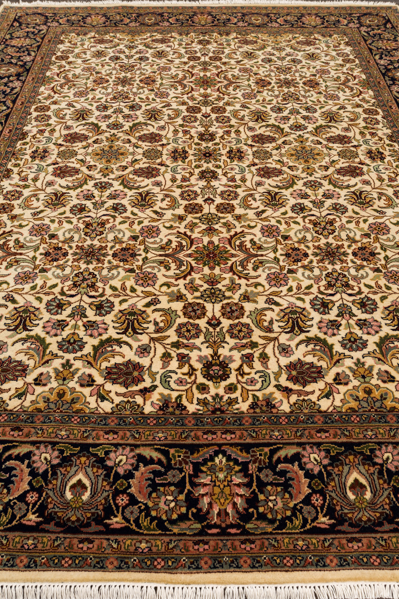 Более пяти веков назад в городе Агра зародилась знаменитая индийская школа ковроткачества, прославившаяся не меньше, чем расположенный здесь же Тадж-Махал. Мощное персидское влияние, помноженное на местный колорит, привело к появлению оригинальных орнаментов с богатыми растительными узорами — причудливым цветам, ветвям и листьям, разбросанным по всему полю ковра.
