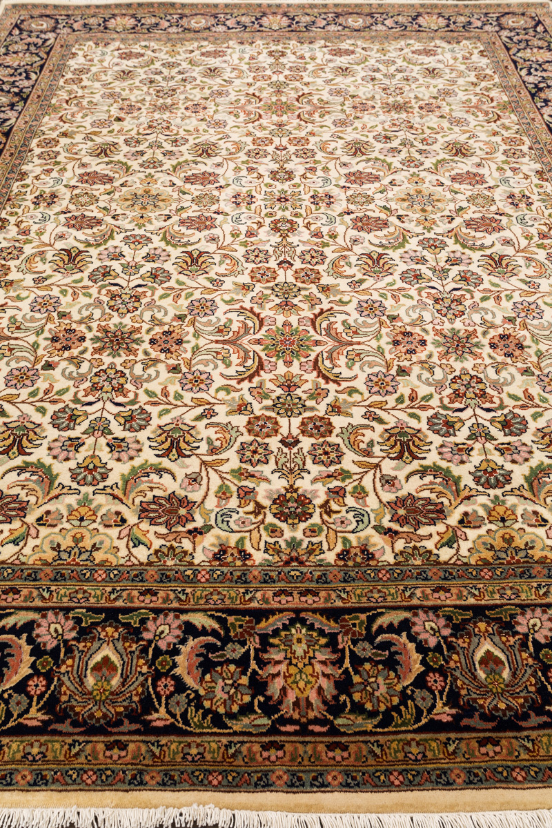 Каждый ковер в этой коллекции соткан вручную из шерсти и арт шёлка опытными индийскими мастерами.