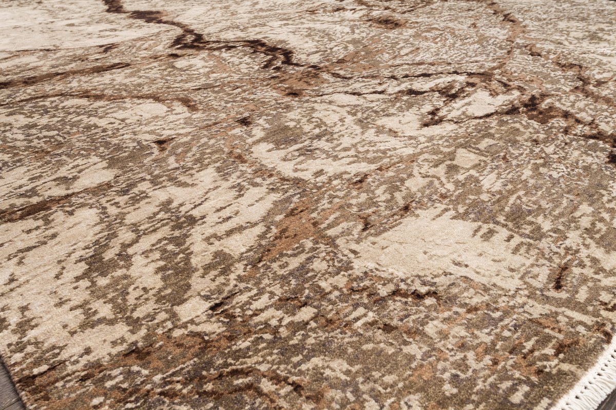Дизайн ковров напоминает современные полотна художников-абстракционистов и производит столь же яркое и незабываемое впечатление в интерьере. Живописный эффект и необычная фактура зависят от выбора материала: натуральной шерсти, шёлка и от их сочетаний друг с другом. Ковры ткутся вручную в лучших мастерских Индии и Пакистана.