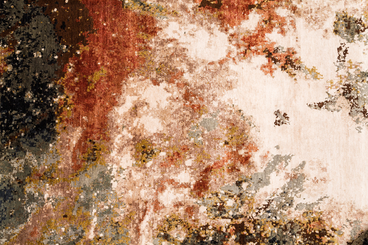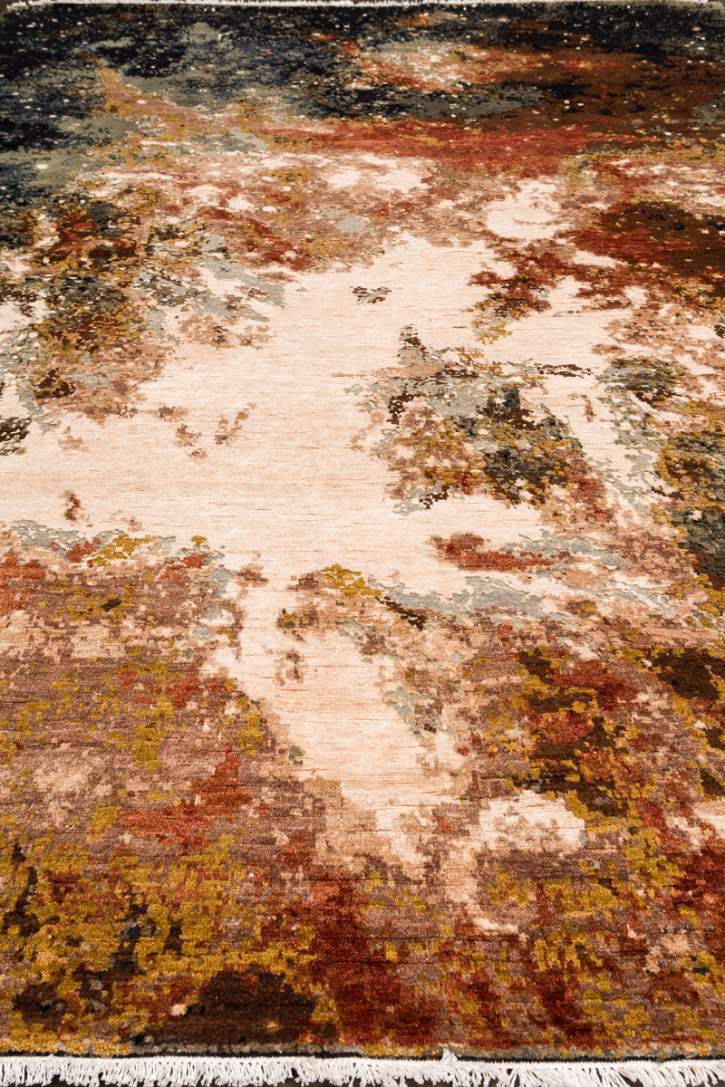 Дизайн ковров напоминает современные полотна художников-абстракционистов и производит столь же яркое и незабываемое впечатление в интерьере. Живописный эффект и необычная фактура зависят от выбора материала: натуральной шерсти, шёлка и от их сочетаний друг с другом. Ковры ткутся вручную в лучших мастерских Индии и Пакистана.