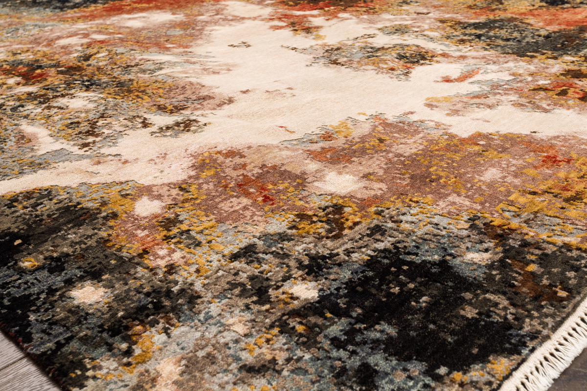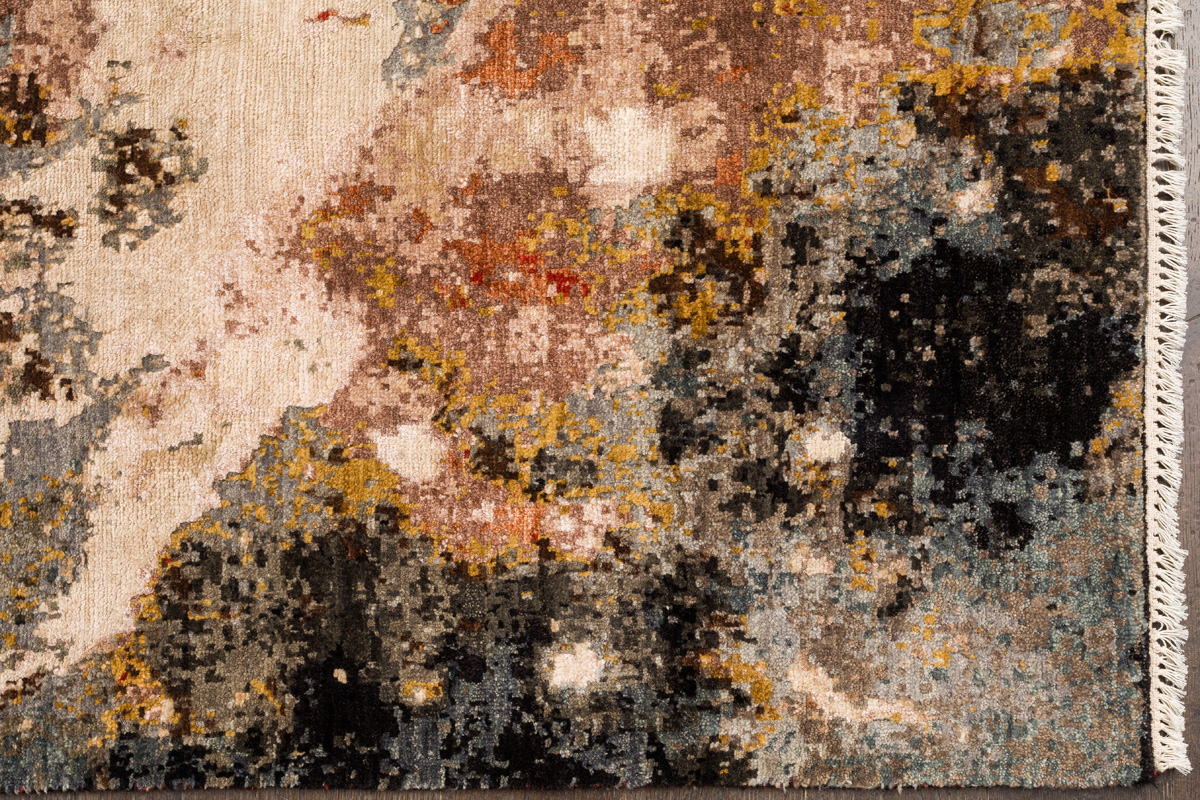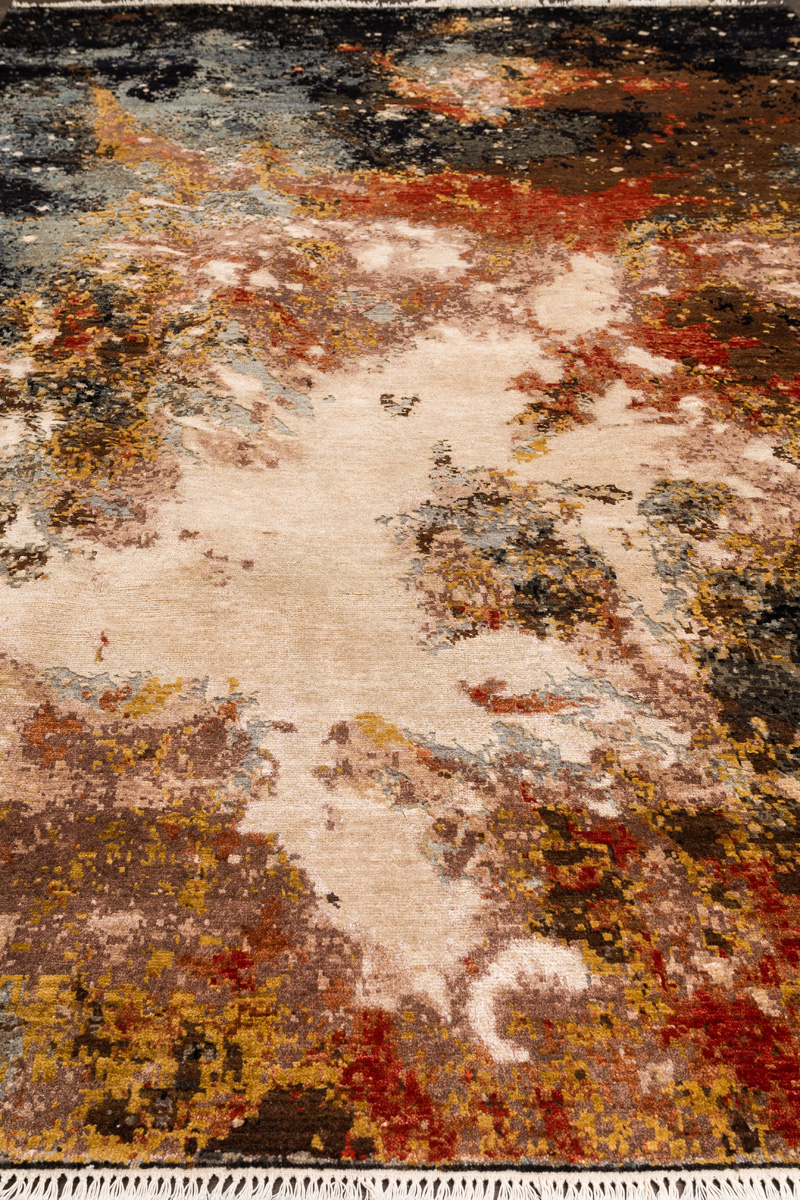 Дизайн ковров напоминает современные полотна художников-абстракционистов и производит столь же яркое и незабываемое впечатление в интерьере. Живописный эффект и необычная фактура зависят от выбора материала: натуральной шерсти, шёлка и от их сочетаний друг с другом. Ковры ткутся вручную в лучших мастерских Индии и Пакистана.