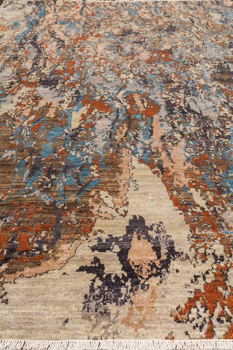 Дизайн ковров напоминает современные полотна художников-абстракционистов и производит столь же яркое и незабываемое впечатление в интерьере. Живописный эффект и необычная фактура зависят от выбора материала: натуральной шерсти, шёлка и от их сочетаний друг с другом. Ковры ткутся вручную в лучших мастерских Индии и Пакистана.