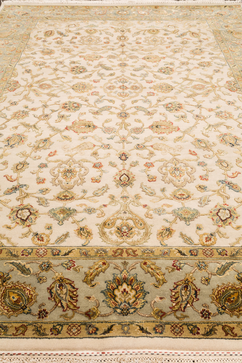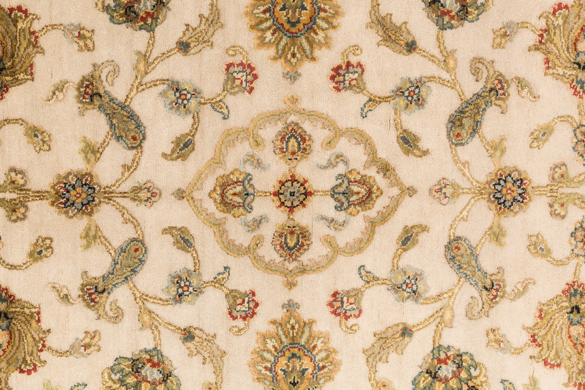 Более пяти веков назад в городе Агра зародилась знаменитая индийская школа ковроткачества, прославившаяся не меньше, чем расположенный здесь же Тадж-Махал. Мощное персидское влияние, помноженное на местный колорит, привело к появлению оригинальных орнаментов с богатыми растительными узорами — причудливым цветам, ветвям и листьям, разбросанным по всему полю ковра.