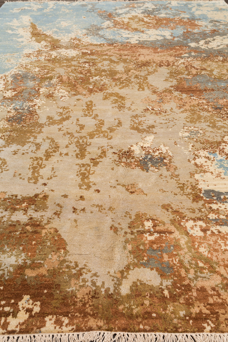 Дизайн ковров напоминает современные полотна художников-абстракционистов и производит столь же яркое и незабываемое впечатление в интерьере. Живописный эффект и необычная фактура зависят от выбора материала: натуральной шерсти, шёлка и от их сочетаний друг с другом. Ковры ткутся вручную в лучших мастерских Индии и Пакистана.