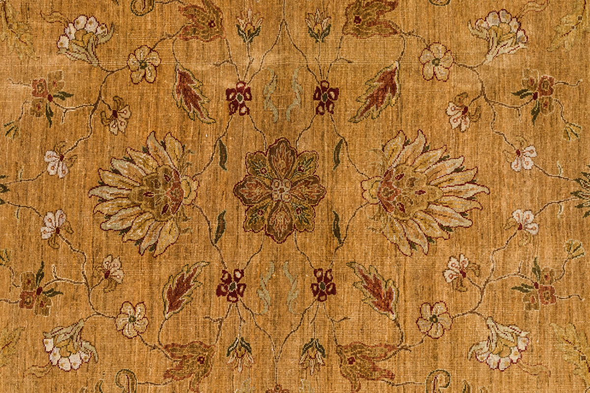 Более пяти веков назад в городе Агра зародилась знаменитая индийская школа ковроткачества, прославившаяся не меньше, чем расположенный здесь же Тадж-Махал. Мощное персидское влияние, помноженное на местный колорит, привело к появлению оригинальных орнаментов с богатыми растительными узорами — причудливым цветам, ветвям и листьям, разбросанным по всему полю ковра.