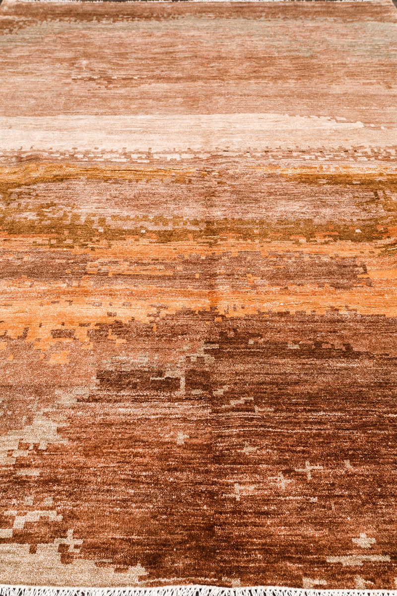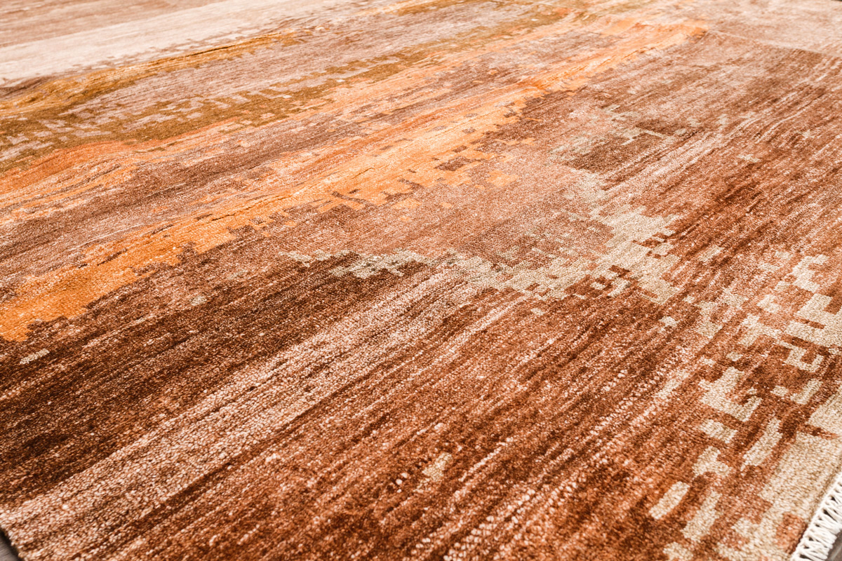 Дизайн ковров напоминает современные полотна художников-абстракционистов и производит столь же яркое и незабываемое впечатление в интерьере. Живописный эффект и необычная фактура зависят от выбора материала: натуральной шерсти, шёлка и от их сочетаний друг с другом. Ковры ткутся вручную в лучших мастерских Индии и Пакистана.