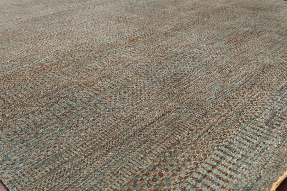 Дизайн ковров напоминает современные полотна художников-абстракционистов и производит столь же яркое и незабываемое впечатление в интерьере. Живописный эффект и необычная фактура зависят от выбора материала: натуральной шерсти, шёлка и от их сочетаний друг с другом. Ковры ткутся вручную в лучших мастерских Индии и Пакистана.