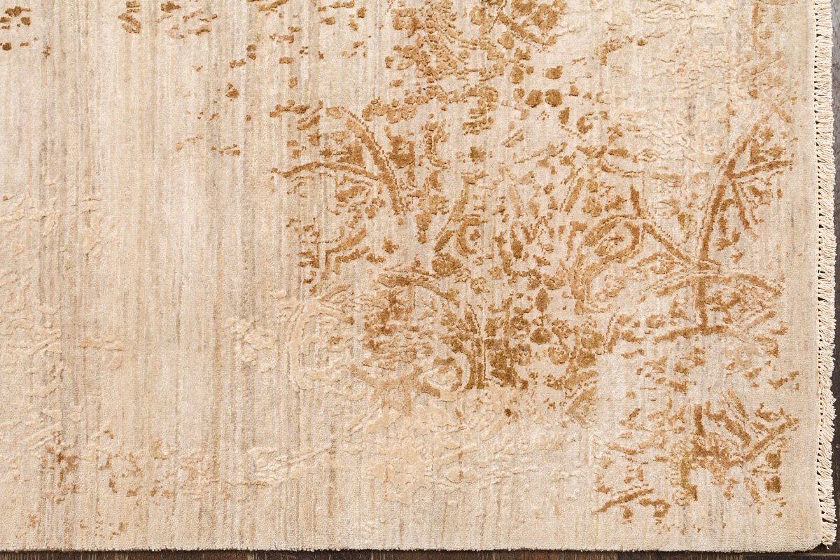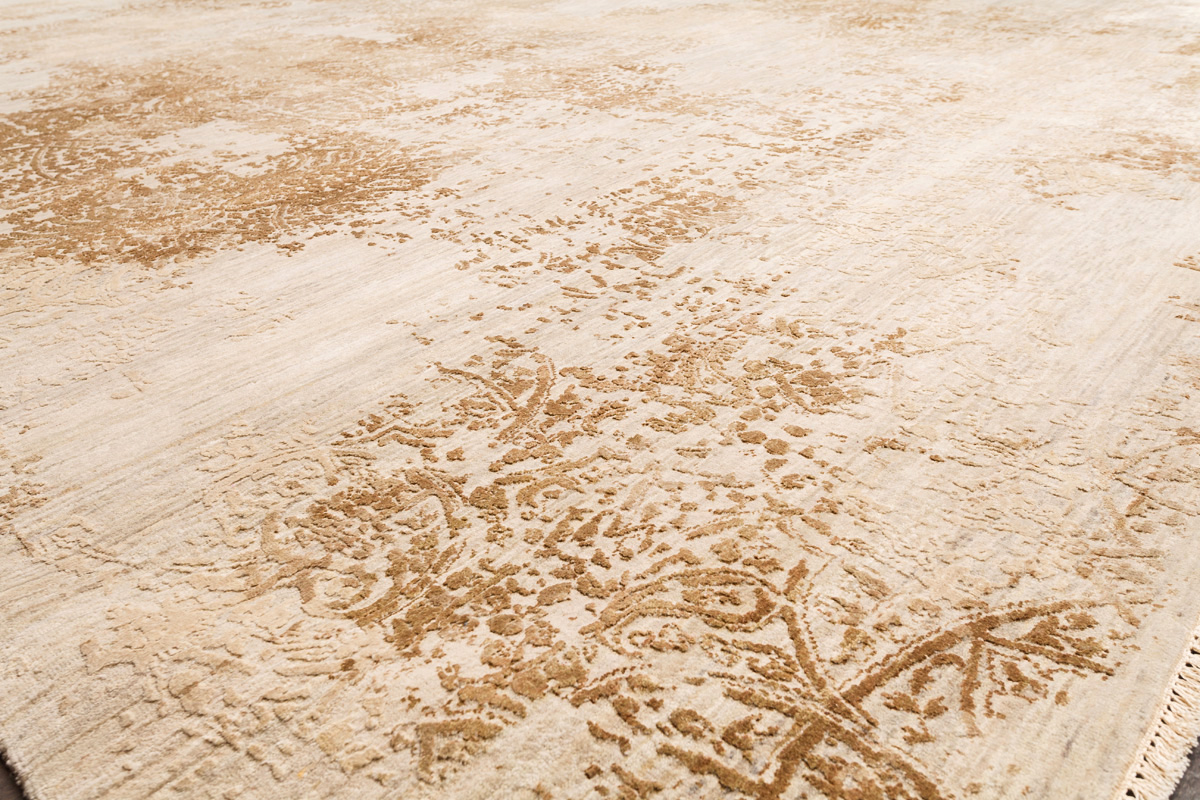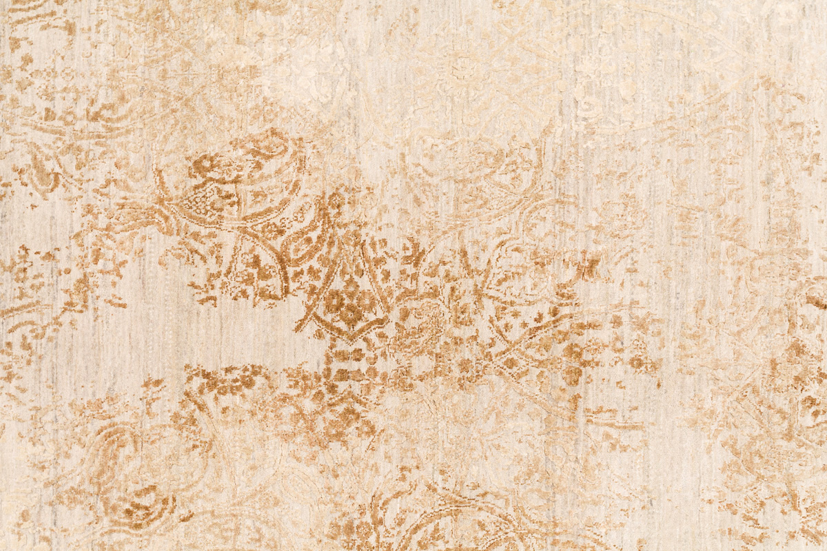 Время и природа — два главных стержня. Впечатление такое, что краски словно стёрлись, а если они и сохраняют яркость, то рисунок сохранился не весь, какие‑то фрагменты утрачены — такова типология этого столь актуального сегодня ковра ручной работы из коллекции illusion.