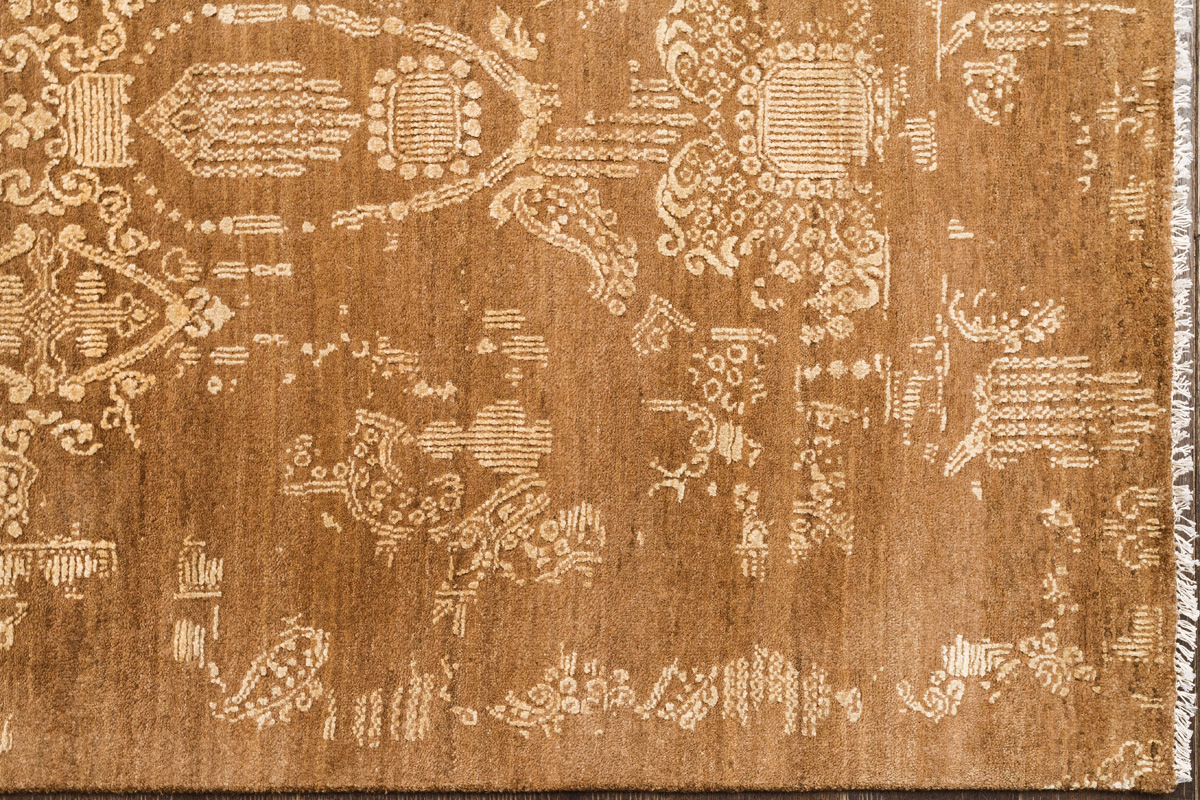 Время и природа — два главных стержня. Впечатление такое, что краски словно стёрлись, а если они и сохраняют яркость, то рисунок сохранился не весь, какие‑то фрагменты утрачены — такова типология этого столь актуального сегодня ковра ручной работы из коллекции Pearl.