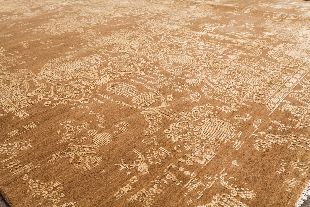 Родина этих ковров Индия. Чтобы создать такое произведение искусства у мастеров уходит от одного года до двух лет. Плотность ковров, в зависимости от размера, составляет от 250 000 до 400 000 узлов на квадратный метр.