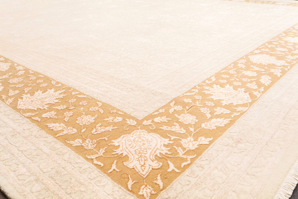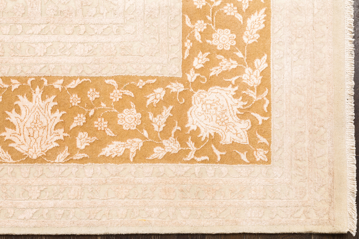 Каждый ковер в этой коллекции соткан вручную из шерсти и арт шёлка опытными индийскими мастерами.