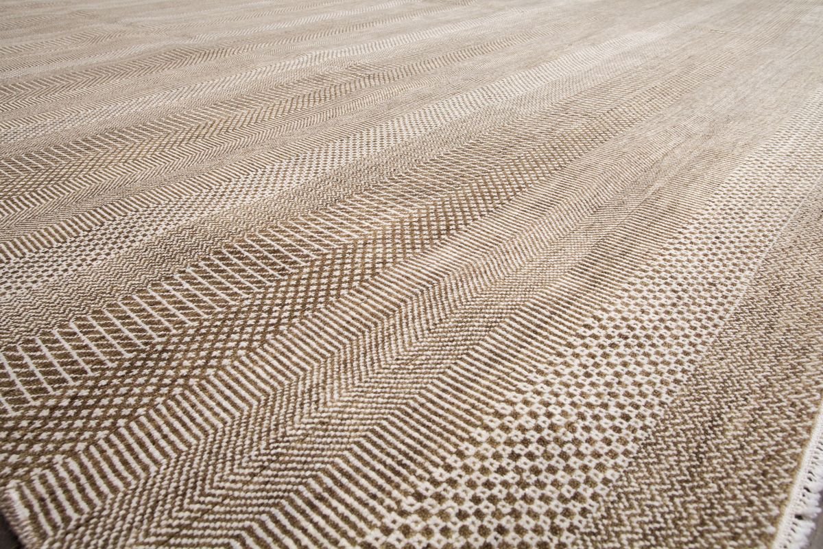 Дизайн ковров напоминает современные полотна художников-абстракционистов и производит столь же яркое и незабываемое впечатление в интерьере. Живописный эффект и необычная фактура зависят от выбора материала: натуральной шерсти, шёлка и от их сочетаний друг с другом. Ковры ткутся вручную в лучших мастерских Индии и Пакистана.