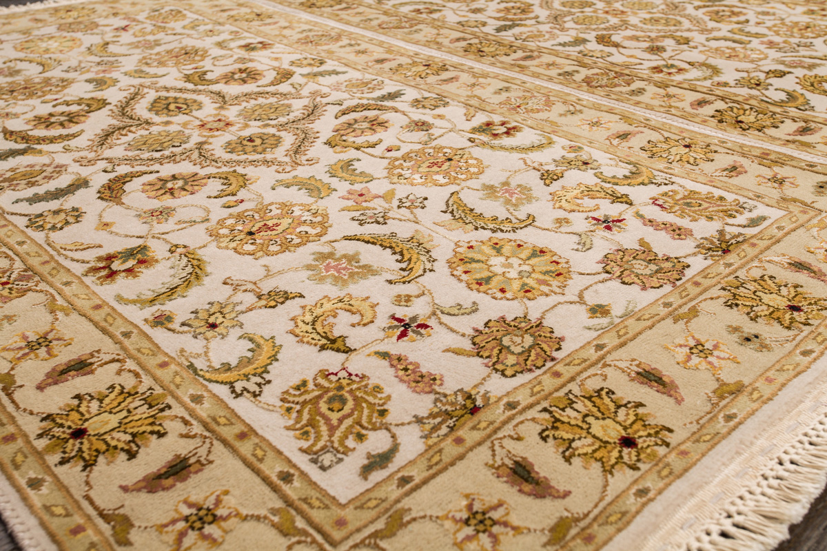 Более пяти веков назад в городе Агра зародилась знаменитая индийская школа ковроткачества, прославившаяся не меньше, чем расположенный здесь же Тадж-Махал. Мощное персидское влияние, помноженное на местный колорит, привело к появлению оригинальных орнаментов с богатыми растительными узорами — причудливым цветам, ветвям и листьям, разбросанным по всему полю ковра.