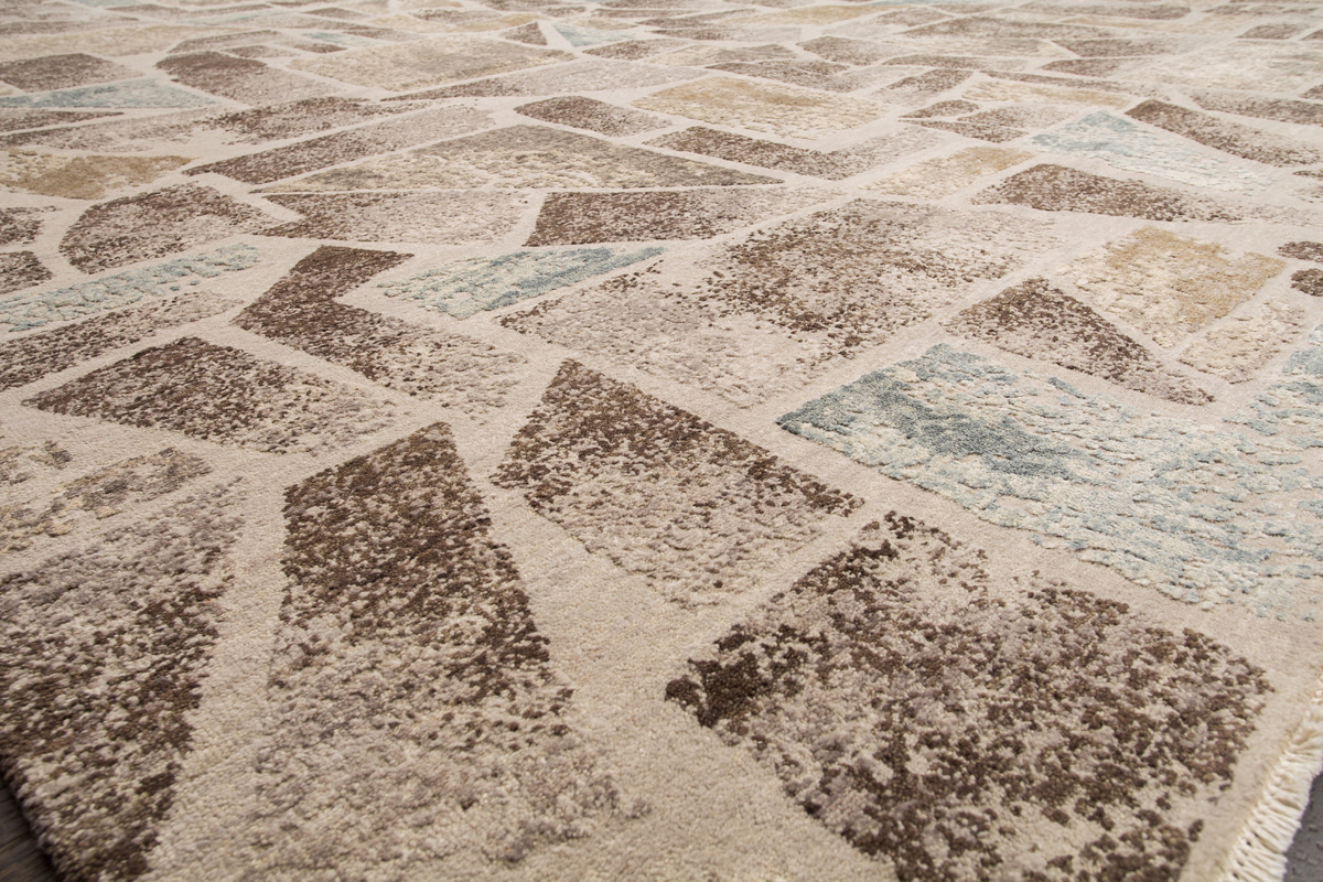 Дизайн ковров напоминает современные полотна художников-абстракционистов и производит столь же яркое и незабываемое впечатление в интерьере. Живописный эффект и необычная фактура зависят от выбора материала: натуральной шерсти, шёлка и от их сочетаний друг с другом. Ковры ткутся вручную в лучших мастерских Индии и Пакистана.