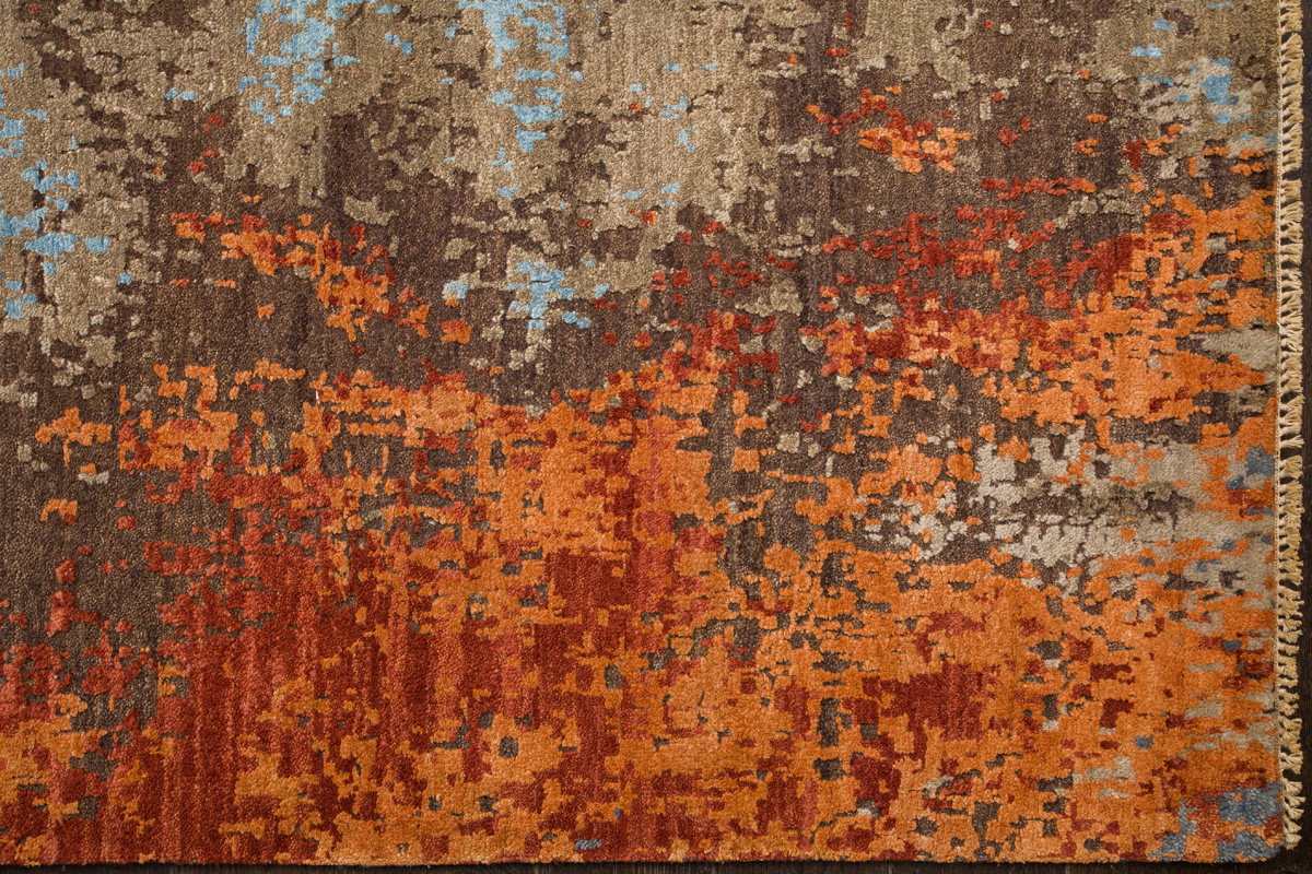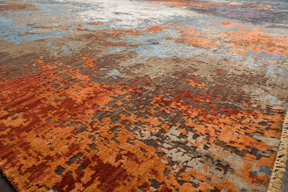 Дизайн ковров напоминает современные полотна художников-абстракционистов и производит столь же яркое и незабываемое впечатление в интерьере. Живописный эффект и необычная фактура зависят от выбора материала: натуральной шерсти, шёлка и от их сочетаний друг с другом. Ковры ткутся вручную в лучших мастерских Индии и Пакистана.