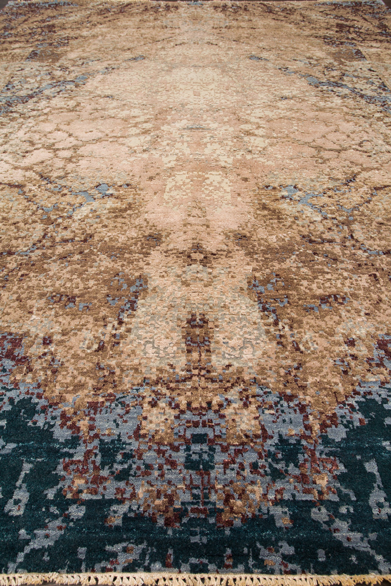 Дизайн ковров напоминает современные полотна художников-абстракционистов и производит столь же яркое и незабываемое впечатление в интерьере. Живописный эффект и необычная фактура зависят от выбора материала: натуральной шерсти, шёлка и от их сочетаний друг с другом. Ковры ткутся вручную в лучших мастерских Индии и Пакистана.