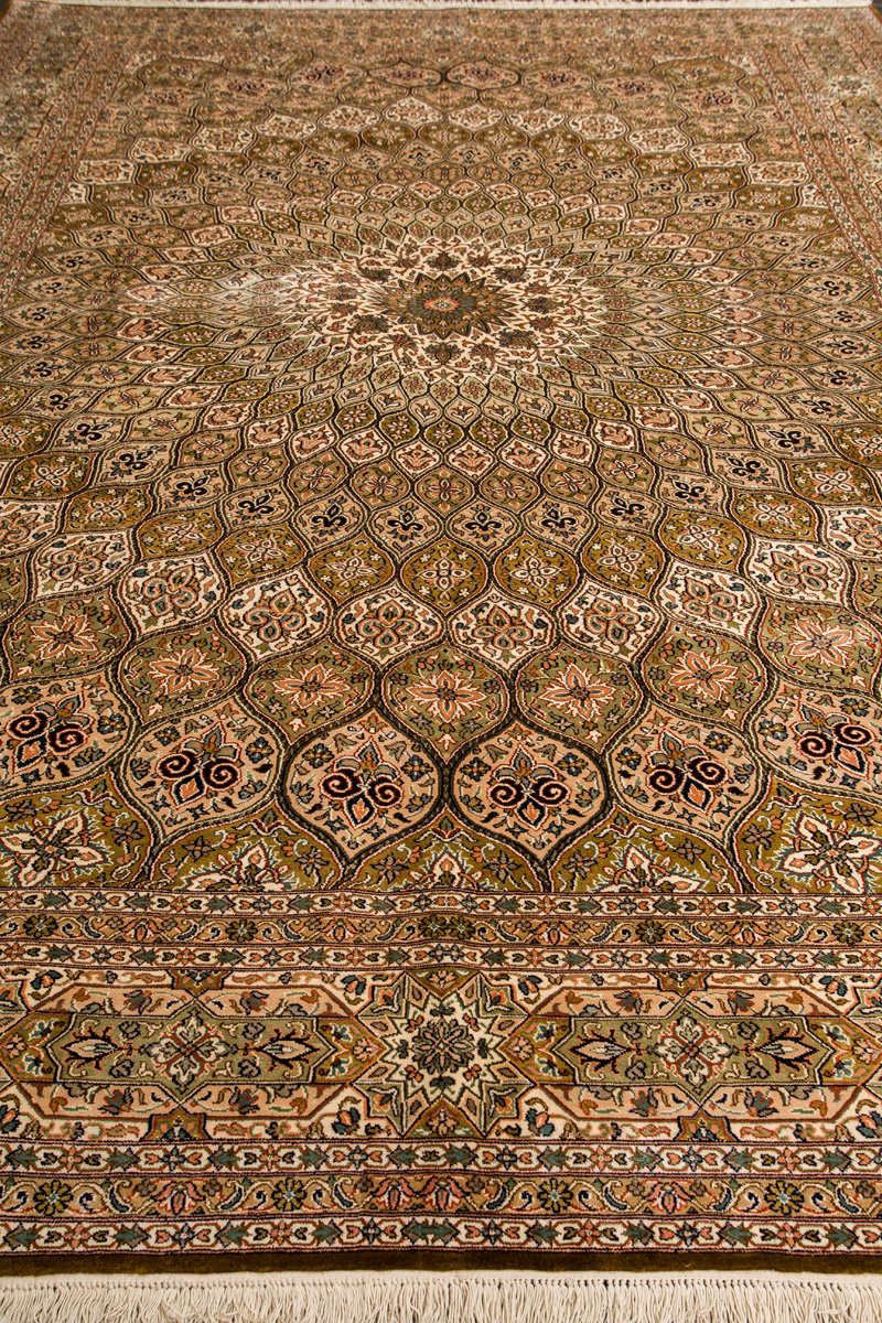 Ковры из коллекции Кашмир ткутся по традиционной технологии из нежнейшего кашмирского шелка. Лучшие произведения индийских мастеров отличает высокая узелковая плотность, прочность и яркость цветов.