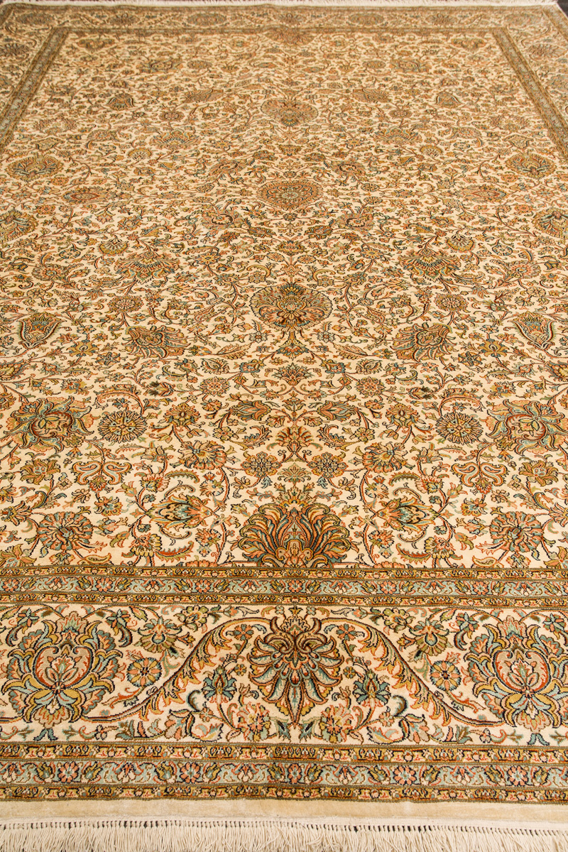 Ковры из коллекции Кашмир ткутся по традиционной технологии из нежнейшего кашмирского шелка. Лучшие произведения индийских мастеров отличает высокая узелковая плотность, прочность и яркость цветов.