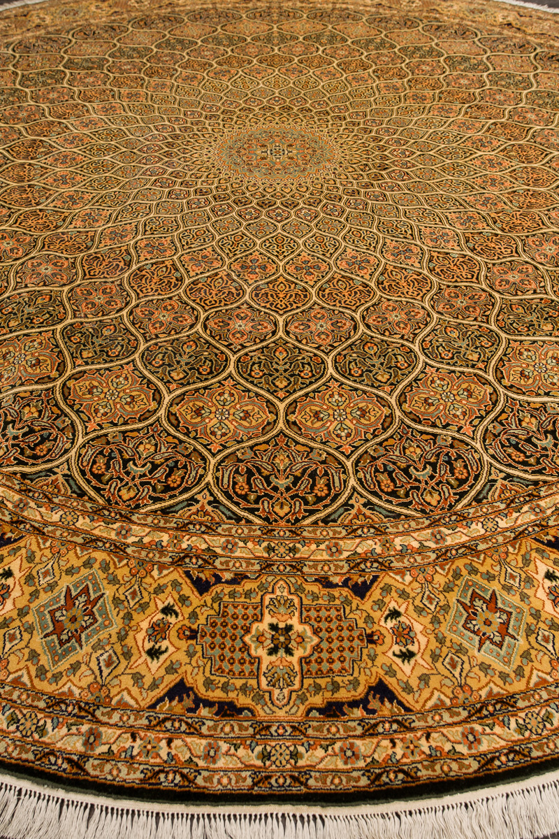 Ковры из коллекции Кашмир ткутся по традиционной технологии из нежнейшего кашмирского шелка. Лучшие произведения индийских мастеров отличает высокая узелковая плотность, прочность и яркость цветов.